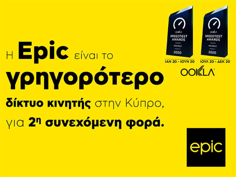 Τον Ιανουάριο του 2021 και με τα νέα αποτελέσματα του Speedtest®, η Ookla επανήλθε και τοποθέτησε την Epic ξανά στην κορυφή των δικτύων κινητής της Κύπρου με δεύτερη βράβευση, και πάλι ως το «Γρηγορότερο Δίκτυο Κινητής της Κύπρου» για την περίοδο από τον Ιούλιο μέχρι τον Δεκέμβριο του 2020, καταγράφοντας άνοδο σε όλες τις κατηγορίες που βαθμολογούνται για να δοθούν τα βραβεία.