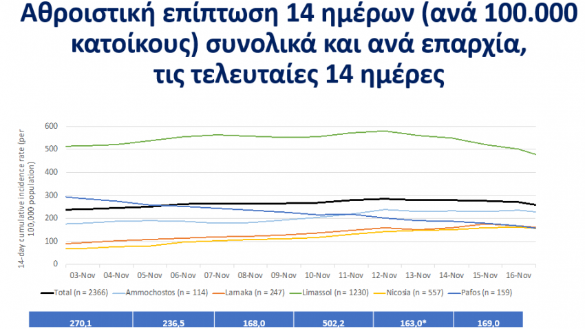 Από τα 2.366 που καταγράφηκαν παγκύπρια το συγκεκριμένο διάστημα, περισσότερα από τα μισά κρούσματα, είχαν τόπο διαμονής στην επαρχία της Λεμεσού και συγκεκριμένα ανακοινώθηκαν 1.234 περιστατικά.