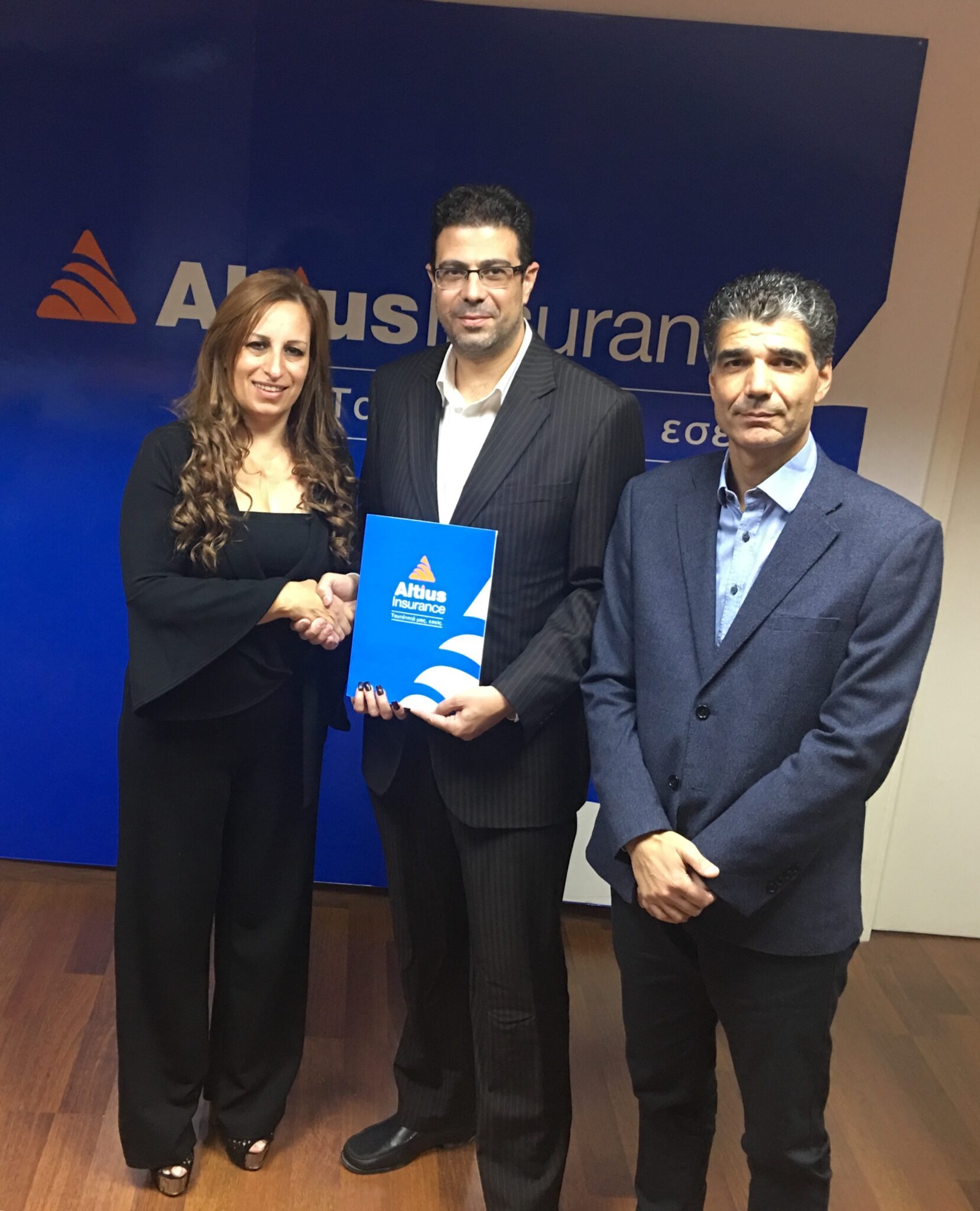 Στη φωτογραφία από δεξιά, ο Διευθυντής Πωλήσεων και Μάρκετινγκ της Altius Insurance κ. Πόλης Προκοπίου, ο Πρόεδρος της Κυπριακής Ομοσπονδίας Καλαθοσφαίρισης κ. Ανδρέας Μουζουρίδης και η Ασφαλιστική Διαμεσολαβήτρια κ.Κυπρούλα Ελευθερίου της Altius Insurance, κατά την παράδοση του ασφαλιστηρίου συμβολαίου.