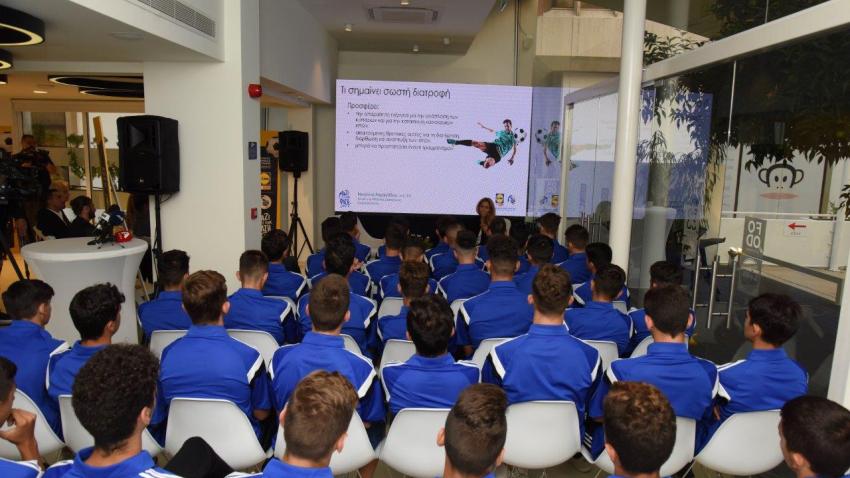 Το απόγευμα της Τρίτης 16 Οκτωβρίου, η Lidl Κύπρου σε συνεργασία με την ΚΟΠ, διοργάνωσε στον ειδικά διαμορφωμένο χώρο της Lidl Food Academy, για την παγκόσμια ημέρα διατροφής, μία διάλεξη αφιερωμένη στην διατροφή των νεαρών ποδοσφαιριστών των εθνικών ομάδων Κύπρου, U14, U15.