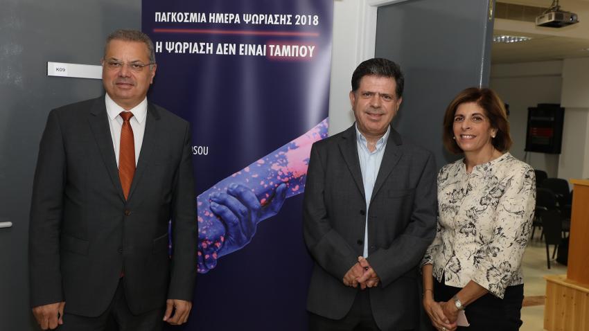 Η Δερματολογική & Αφροδισιολογική Εταιρεία Κύπρου(ΔΑΕΚ) και η Ρευματολογική Εταιρεία Κύπρου (ΡΕΚ) σε συνεργασία με την εταιρεία Novartis Pharma Services Inc. Κύπρου παρέθεσαν δημοσιογραφική διάσκεψη στην αίθουσα διασκέψεων του Υπουργείου Υγείας την Τετάρτη 17 Οκτωβρίου, με στόχο την ευαισθητοποίηση του κοινού γύρω από την Ψωρίαση και την Ψωριασική αρθρίτιδα, με την ευκαιρία της Παγκόσμιας Ημέρας Ψωρίασης, στις 29 Οκτωβρίου 2018, που διοργανώνεται κάθε χρόνο από τη Διεθνή Ομοσπονδία Συλλόγων Ψωρίασης (IFPA).
