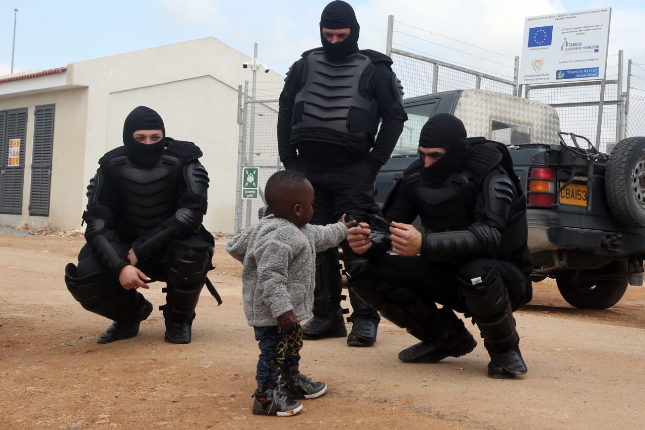 Ένας Αστυνομικός παίζει με ένα μικρό παιδάκι μετανάστη, που με αγνότητα και αυθορμητισμό ζήτησε την προσοχή του.