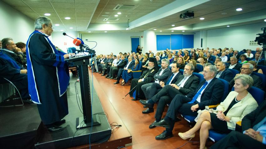 Στην Τελετή Αναγόρευσης μεταξύ άλλων παρευρέθηκαν ο Αρχιεπίσκοπος Κύπρου, ο Επίσκοπος Μεσαορίας, ο Πρόεδρος του ΔΗΣΥ, Εκπρόσωποι των Κοινοβουλευτικών Κομμάτων ΑΚΕΛ, ΔΗΚΟ και ΕΔΕΚ, ο Υπουργός Εξωτερικών, ο Υπουργός Δικαιοσύνης και Δημοσίας Τάξεως, η Υπουργός Μεταφορών, Επικοινωνιών και Έργων, ο Υπουργός Γεωργίας, Αγροτικής Ανάπτυξης και Περιβάλλοντος, ο πρώην Πρόεδρος της Βουλής κ. Γιαννάκης Ομήρου, Βουλευτές, Δικαστές, ο Αρχηγός της Εθνικής Φρουράς, ο Αρχηγός της Αστυνομίας, πρώην Υπουργοί και Βουλευτές, ο Γενικός Ελεγκτής, η Επίτροπος Νομοθεσίας, η Πρόεδρος του Φορέα ΔΙΠΑΕ, ο Πρόεδρος του Παγκύπριου Δικηγορικού Συλλόγου, Πρυτάνεις και Αντιπρυτάνεις άλλων κυπριακών πανεπιστημίων, Εισαγγελείς και Δικηγόροι της Κυπριακής Δημοκρατίας, μεγάλος αριθμός νομικών και δικηγόρων, μέλη της ακαδημαϊκής κοινότητας, φοιτητές, καθώς και πλήθος κόσμου.