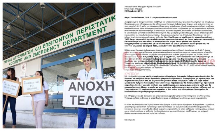 “Υπενθυμίζουμε και τονίζουμε ότι πολλοί γιατροί των ΤΑΕΠ έχουν παραιτηθεί ακόμη και αφυπηρετήσει χωρίς ακόμη να έχουν αντικατασταθεί. Ως αποτέλεσμα αυτό οι εναπομείναντες ιατροί έχουν φτάσει στα όρια εξουθένωσης με τις αντοχές τους να έχουν μειωθεί σε τέτοιο βαθμό που να γίνονται επιρρεπείς σε ιατρικά λάθη με κίνδυνο την ασφάλεια των ασθενών.