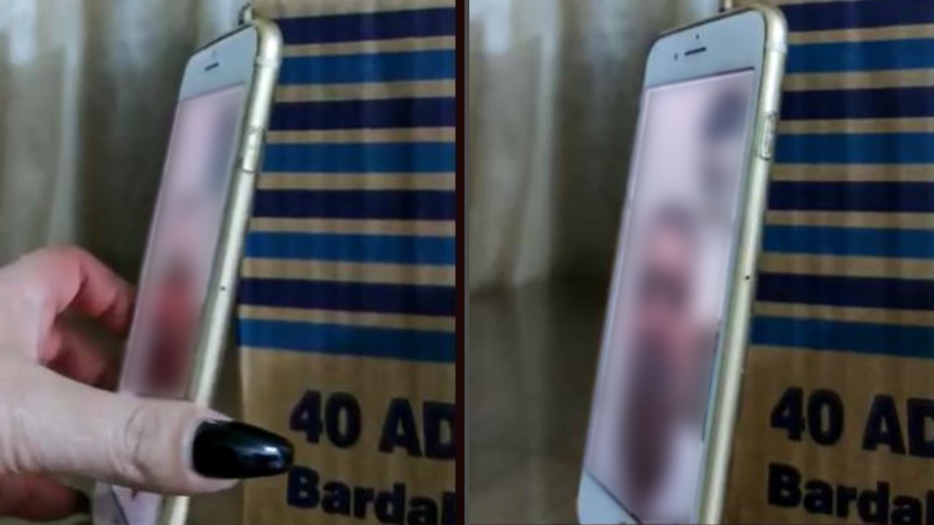 Οι εικόνες που δημοσιεύονται με αλλοίωση από την ιστοσελίδα μας για λόγους προστασίας προσωπικών δεδομένων, καταδεικνύουν γυναίκα να βιντεοσκοπεί κινητό τηλέφωνο στο οποίο βρίσκεται σε εξέλιξη βιντεοκλήση με τον Ερσάν Σανέρ. Η γυναίκα κινείται μπροστά στην κάμερα και αποκαλύπτει το σώμα της, ενώ ο “ψευδοπρωθυπουργός” φάινεται να παρακολουθεί τα τεκταινόμενα. Το βίντεο που κυκλοφόρησε στα κατεχόμενα έχει διάρκεια 1 λεπτό και 29 δευτερόλεπτα.