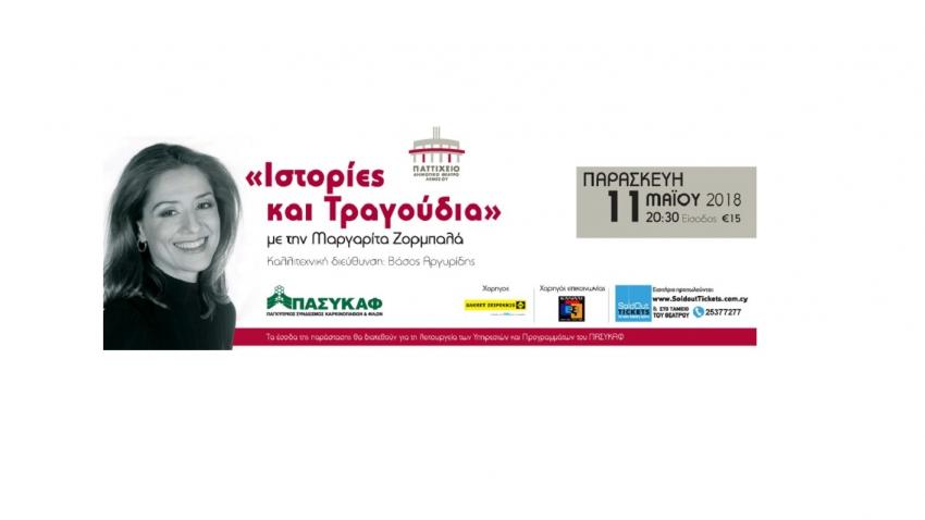Το Παττίχειο Δημοτικό Θέατρο Λεμεσού παρουσιάζει μια μοναδική μουσική παράσταση με «Ιστορίες και Τραγούδια» της Μαργαρίτας Ζορμπαλά, την Παρασκευή 11 Μαΐου στις 20:30.