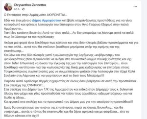 Πάντως ο Αντιδήμαρχος του κατεχόμενου Δήμου Αμμοχώστου Χρύσανθος Ζαννέττος δίνει τη δική του εκδοχή για την ακύρωση της Ακολουθίας, κάνοντας λόγο για αντίποινα του ψευδοκράτους «για την κωλυσιεργία της δικής μας κυβέρνησης να επιτρέψει στους Τουρκοκύπριους συμπατριώτες μας να συμμετάσχουν μαζικά στην λειτουργία στο τζαμί Χαλά Σουλτάν στη Λάρνακα και να γιορτάσουν εκεί το δικό τους Μπαϊράμι!»