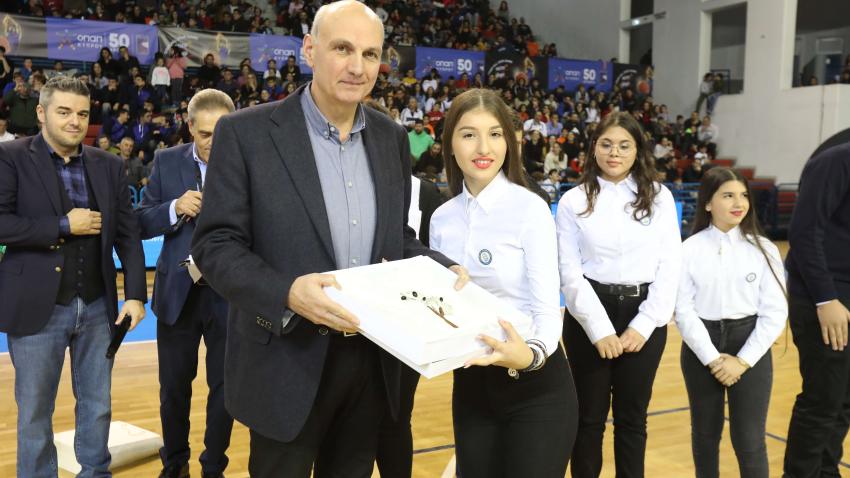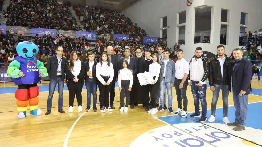 Συγκλόνισε όμως και η απονομή του θεσμοθετημένου από την ΟΠΑΠ βραβείου «Νεόφυτος Χανδριώτης», στη μνήμη του διεθνούς καλαθοσφαιριστή και άριστου φοιτητή μας, ο οποίος πέθανε την 1η Δεκεμβρίου 2015 σε νοσοκομείο της Βοστώνης, σε ηλικία 22 χρόνων κι αφού πάλεψε γενναία με τον καρκίνο. Το βραβείο απονεμήθηκε από τον πατέρα του Νεόφυτου, εκπαιδευτικό Δημήτρη Χανδριώτη, στους μαθητές του Εξατάξιου Γυμνασίου Ριζοκαρπάσου που με την αντοχή και επιμονή τους, στέλλουν μηνύματα ελπίδας για το μέλλον της Κύπρου μας! Το κοινό στο στάδιο υποδέχθηκε με αγάπη τους μαθητές και μαθήτριες του Γυμνασίου Ριζοκαρπάσου οι οποίοι ανταπόδωσαν με τις γλυκές ευχές τους! Τους μαθητές συνόδευε ο καθηγητής Τρύφωνας Παπαγιάννης και ο Επαρχιακός Επιθεωρητής Λάρνακας-Αμμοχώστου Μιχαλάκης Λοϊζίδης.