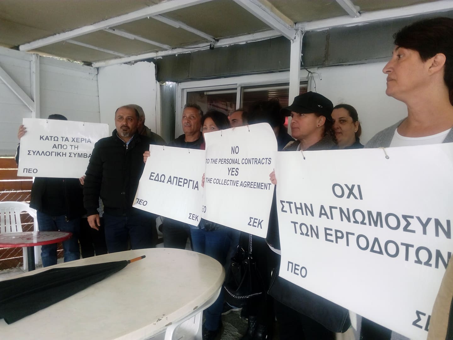 Διαμαρτύρονται για την απόλυση τους από τους υπεργολάβους που παρέχουν υπηρεσίες εστίασης και καθαριότητας στην UNFICYP. Ο Ανδρέας Κόμπου εκ μέρους της ΣΥΞΚΑ ΠΕΟ εξηγεί ότι οι δυο υπεργολάβοι που ανέλαβαν τις υπηρεσίες σίτισης και καθαριότητας μέσω των νέων συμβολαίων καταργούν τα δικαιώματα των εργαζομένων και δεν αναγνωρίζουν τη συλλογική σύμβαση. Οι νέοι εργολάβοι απολύουν το προσωπικό που όπως τονίζει η συντεχνία δεν υποκύπτει στους εκβιασμούς τους για μείωση των μισθών και κατάργηση ωφελημάτων.