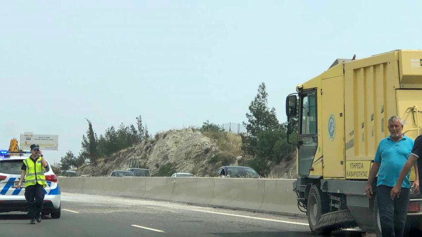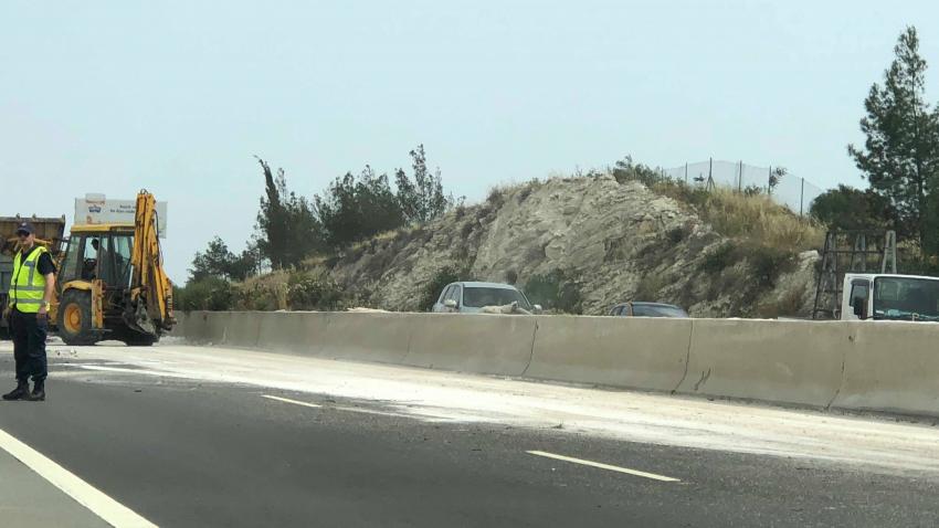 Άνοιξε ο αυτοκινητόδρομος Λευκωσίας – Λάρνακας παρά την Κόσιη, ο οποίος είχε κλείσει όταν φορτηγό φορτωμένο με λίπασμα προκάλεσε τροχαίο.