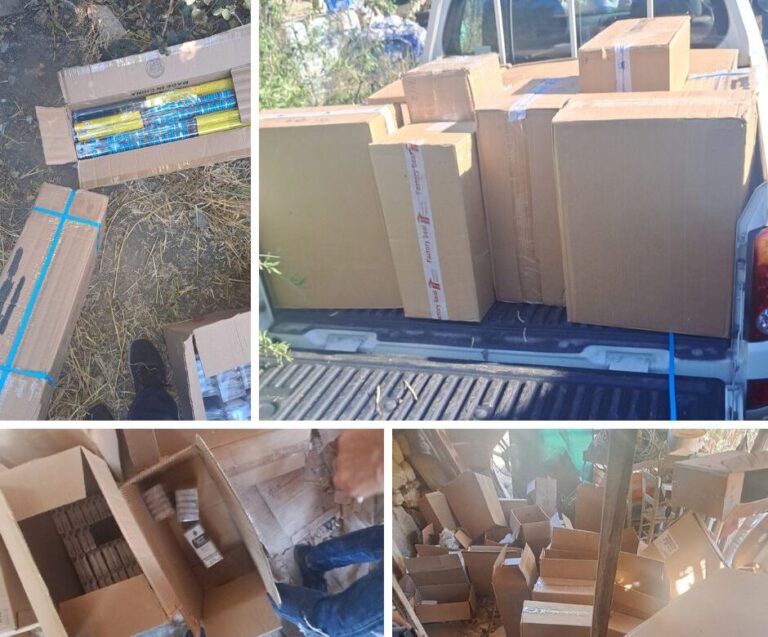 Συγκεκριμένα μετά από αξιολόγηση πληροφοριών που λήφθηκε στην Αστυνομία, μέλη του Ουλαμού Πρόληψης Εγκλημάτων (ΟΠΕ) Λευκωσίας και του Τμήματος Τελωνείων, διενήργησαν επιχείρηση στην περιοχή Δένειας. Κατά τη διάρκεια της επιχείρησης εντοπίστηκαν σε εγκαταλελειμμένο υποστατικό και κατασχέθηκαν συνολικά 550 κούτες αδασμολόγητα τσιγάρα και ποσότητα αδασμολόγητου καπνού συνολικού βάρους 18 κιλών και 762 γραμμαρίων. Στο υποστατικό εντοπίστηκαν επίσης και κατασχέθηκαν 99 κυλινδρικά βεγγαλικά.