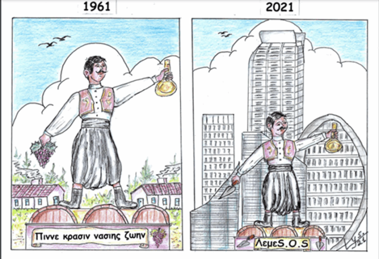 Η Λεμεσός της παράδοσης, της γιορτής, του κρασιού, των κοινοτήτων και των συνοικιών μετατρέπεται με ιλιγγιώδη ρυθμό σε ένα πολυτελές εργοτάξιο. Τα αμπέλια αντικαθίστανται από οικόπεδα. Οι γειτονιές από πύργους. Οι κάτοικοι από επενδυτές.