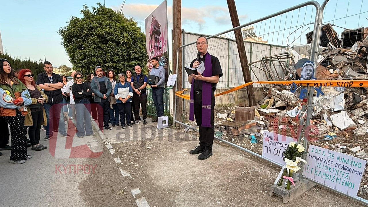 Η συγκέντρωση πάνω από τα ερείπια αποτέλεσε έναν ύστατο φόρο τιμής, με τους παρευρισκόμενους να ζητούν να μην ξεχαστεί το περιστατικό και να διασφαλιστούν ανθρώπινες συνθήκες στέγασης για όλους.
