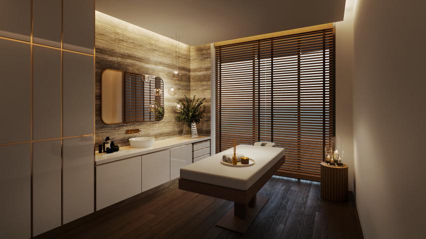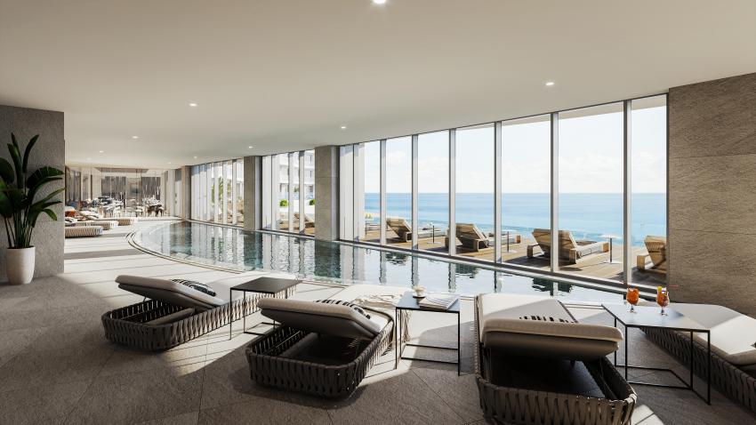 Στο ίδιο επίπεδο, ακριβώς απέναντι από τη θάλασσα, υπάρχει η δυνατότητα χρήσης εξωτερικής και εσωτερικής πισίνας και σάουνας. Στο υπερσύγχρονο κέντρο σπα, θα προσφέρεται επίσης, ένας αριθμός διαφορετικών επιλογών προσωπικής φροντίδας. Επιπλέον, για τους λάτρεις της ευεξίας, σχεδιάζεται ένα γυμναστήριο με την τελευταία λέξη της τεχνολογίας και με απρόσκοπτη θέα στη θάλασσα, διαθέσιμο αποκλειστικά για τους ενοίκους.