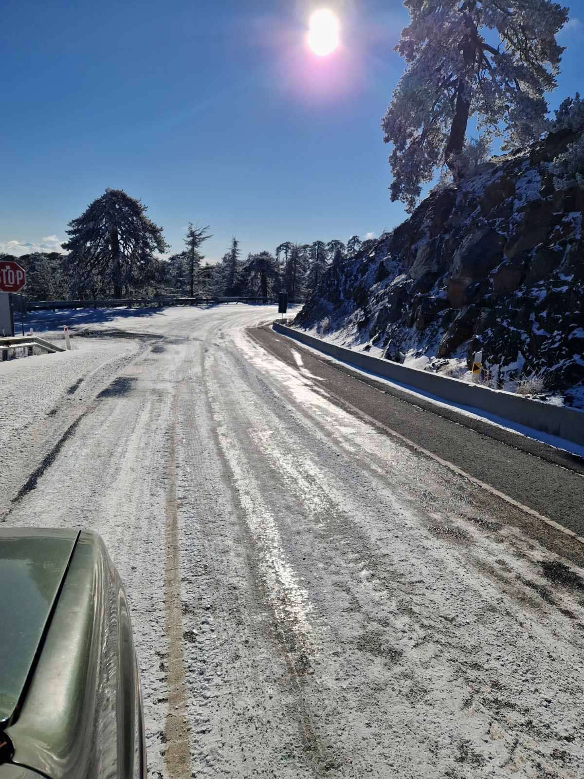 Σύμφωνα με την Αστυνομία, οι δρόμοι Καρβουνά-Τροόδους, Πλατρών-Τροόδους και Προδρόμου-Τροόδους, είναι ανοικτοί μόνο για οχήματα με κίνηση και στους τέσσερις τροχούς ή εφοδιασμένα με αντιολισθητικές αλυσίδες. Ανοιχτοί αλλά ιδιαίτερα ολισθηροί είναι οι εξής δρόμοι: