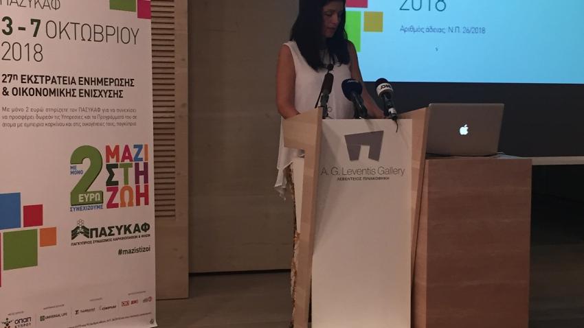 Στην ομιλία της η Πρόεδρος του ΠΑΣΥΚΑΦ, Δρ. Αχιλλεούδη, τόνισε τη σημασία της επιτυχούς έκβασης της φετινής εκστρατείας για τη διασφάλιση της απρόσκοπτης λειτουργίας των δωρεάν Υπηρεσιών και Προγραμμάτων του ΠΑΣΥΚΑΦ.
