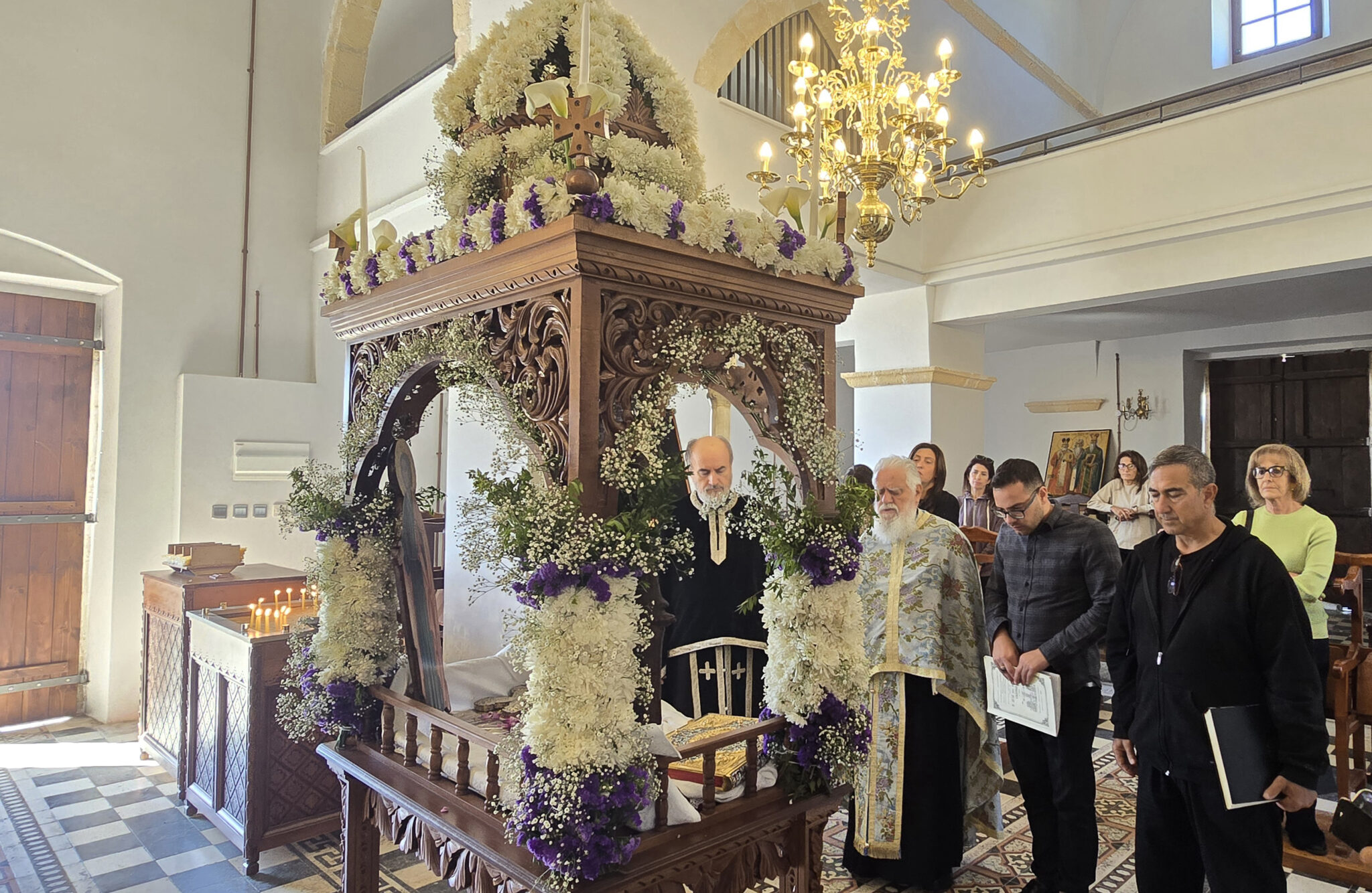Mε θρησκευτική ευλάβεια και μέσα σε κλίμα κατάνυξης και συγκίνησης, παιδιά και νέοι που ζουν στο κατεχόμενο Ριζοκάρπασο στόλισαν και φέτος τον Επιτάφιο, με μοβ και λευκά άνθη, για την αποψινή Ακολουθία στον ιερό Ναό του Αγίου Συνεσίου.