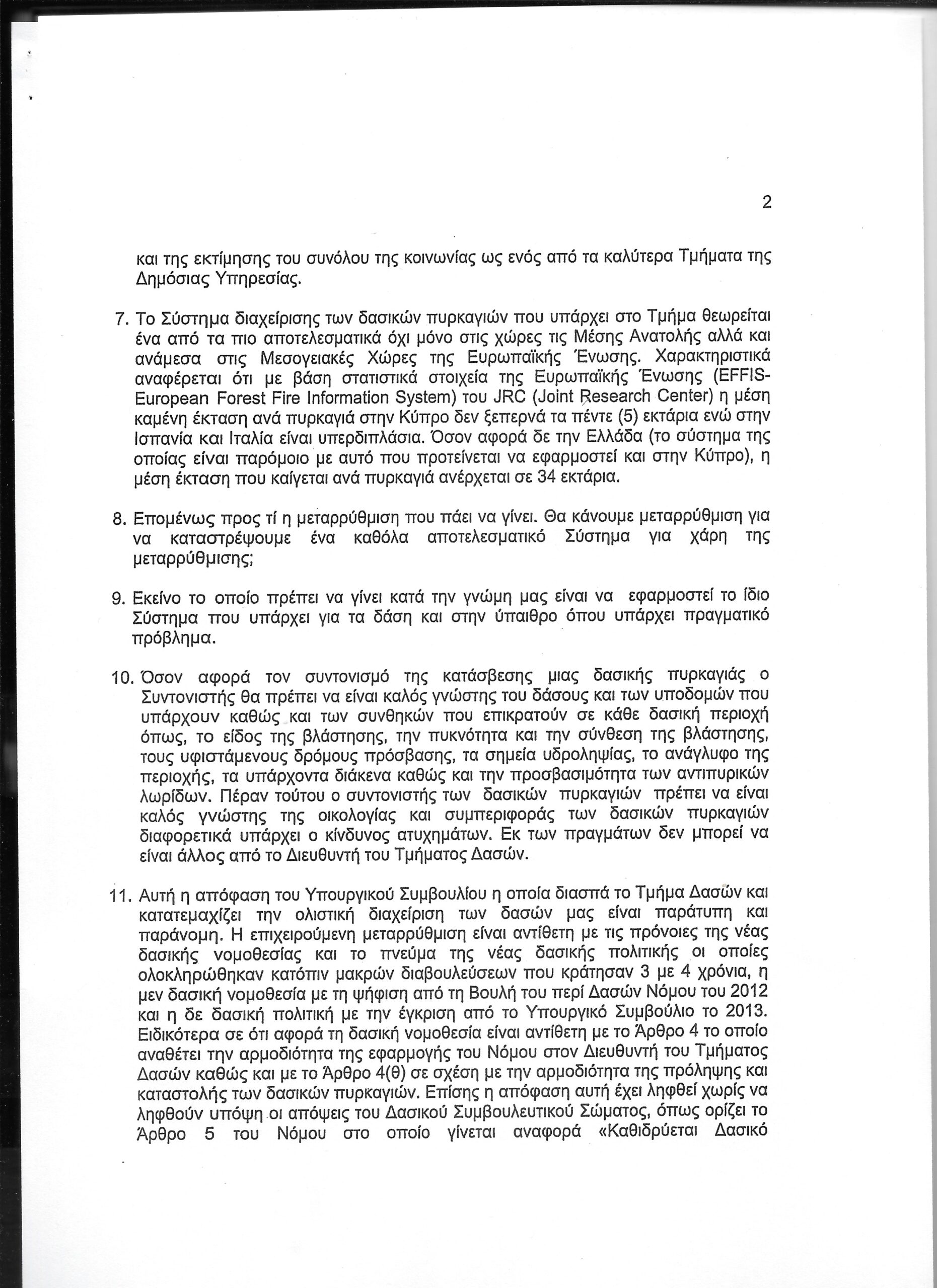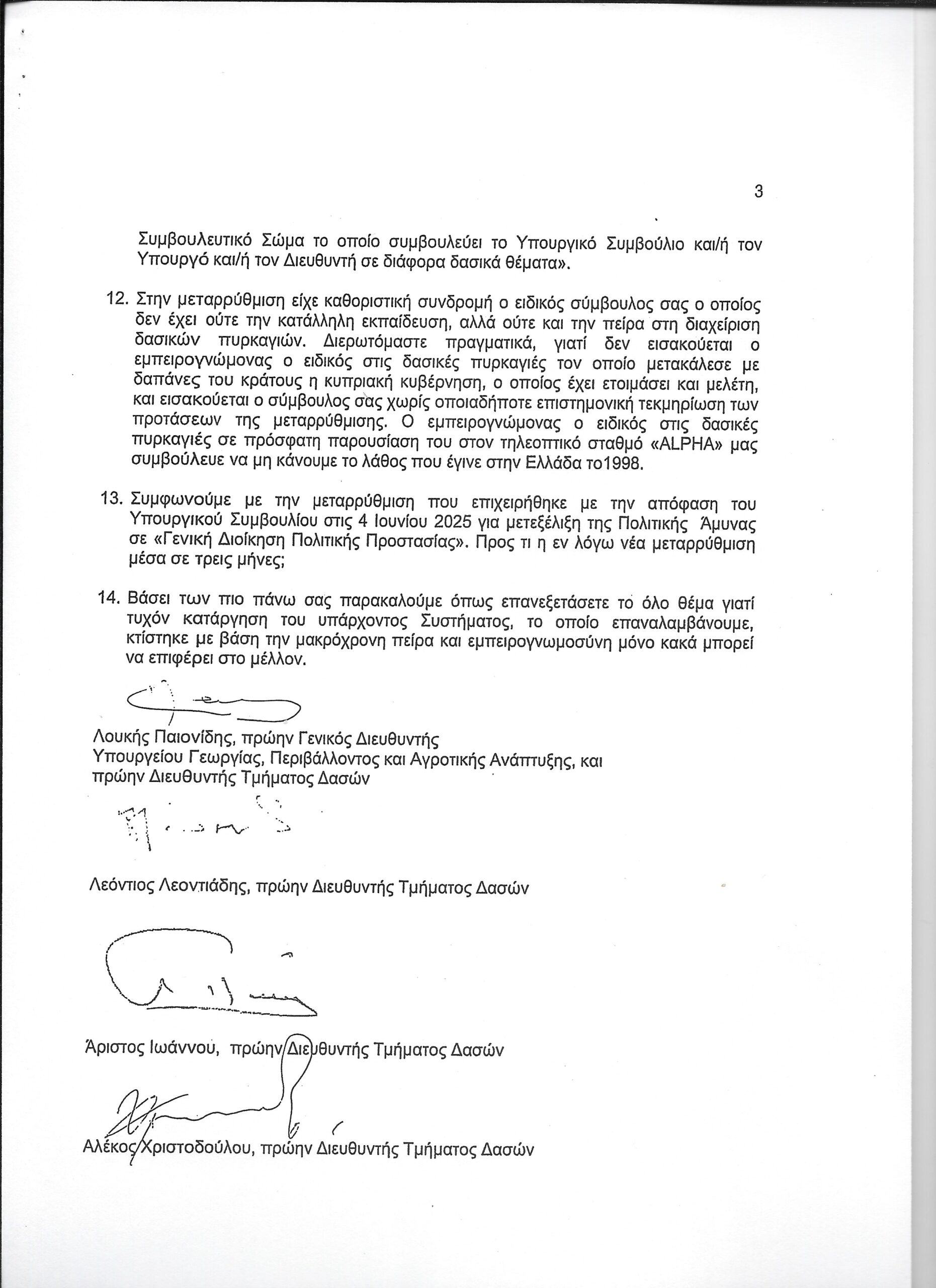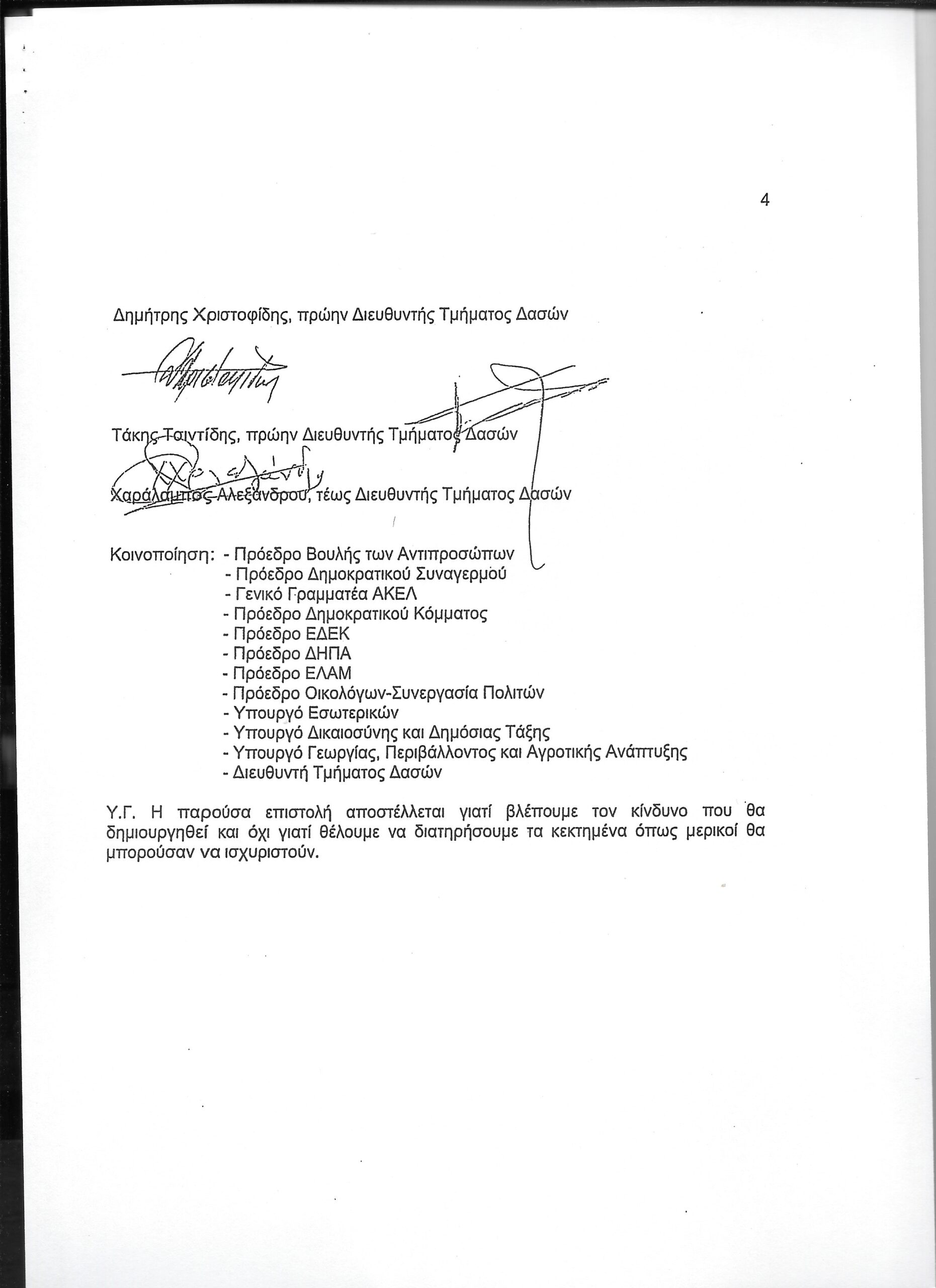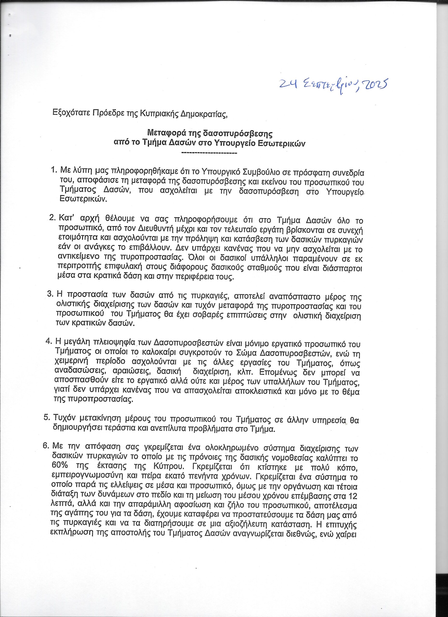 Με αυτό τον τρόπο, εννέα πρώην Διευθυντές του Τμήματος Δασών εκφράζουν την έντονη και κάθετη διαφωνία τους για την μεταφορά της δασοπυρόσβεσης από το Τμήμα Δασών, στο Υπουργείο Εσωτερικών.