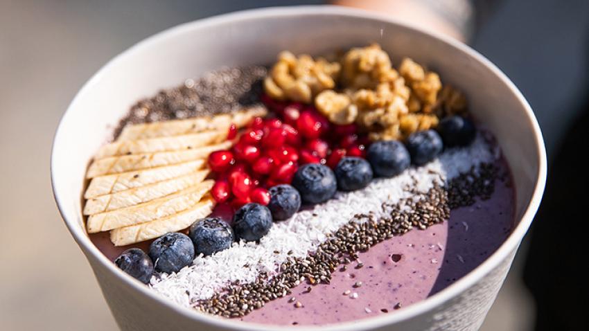 Το Purple Bliss με βάση από μύρτιλο και μπανάνα, το Green Goddess με βάση από αβοκάντο, σπανάκι και μάνγκο και το Chia Pudding με βάση από γάλα καρύδας και σπόρους chia, εμπλουτίζονται με φρέσκα φρούτα και superfoods για toppings.