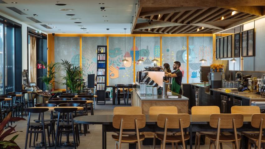 Το νέο κατάστημα βρίσκεται στον πρώτο όροφο του εμπορικού κέντρου με εσωτερικό χώρο 270 τ.μ. και εξωτερικό χώρο 180 τ.μ. Διακρίνεται από μοντέρνα αισθητική, έχει minimal σχεδιασμό και συνδυάζει με αρμονικό τρόπο τις ιδιαίτερες πινελιές από ξύλο και μέταλλο.