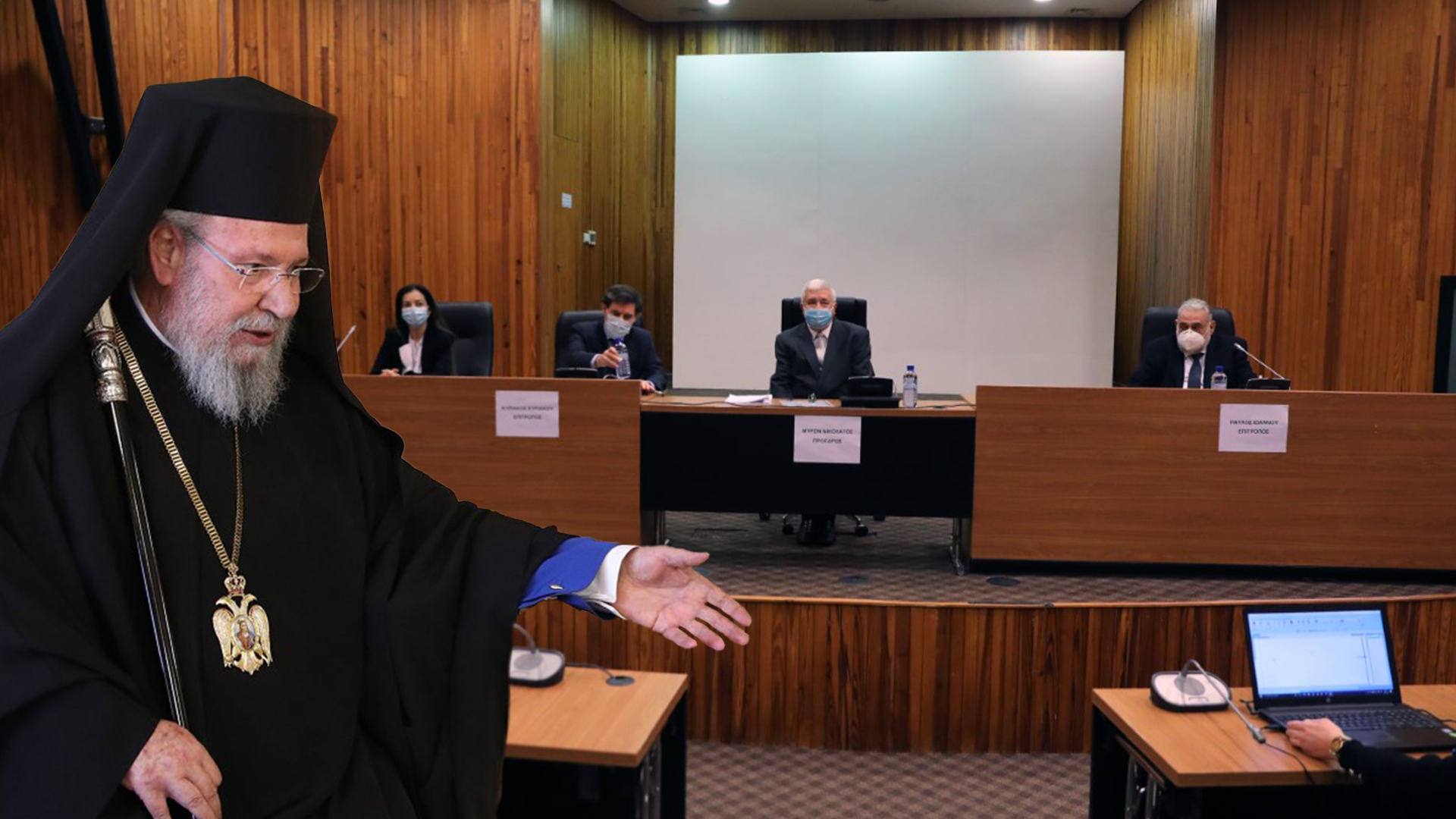 Ο Αρχιεπίσκοπος Χρυσόστομος καταθέτει στην Ερευνητική Επιτροπή στο Αρχιεπισκοπικό Μέγαρο, αφού τα μέλη έκαναν δεκτό σχετικό αίτημα, επικαλούμενος δυσκολίες στην μετακίνηση του λόγω προβλημάτων υγείας. Τη διαδικασία παρακολουθούν δημοσιογράφοι, τηρουμένων όλων των υγειονομικών πρωτοκόλλων για αντιμετώπιση της πανδημίας του κορωνοϊού.
