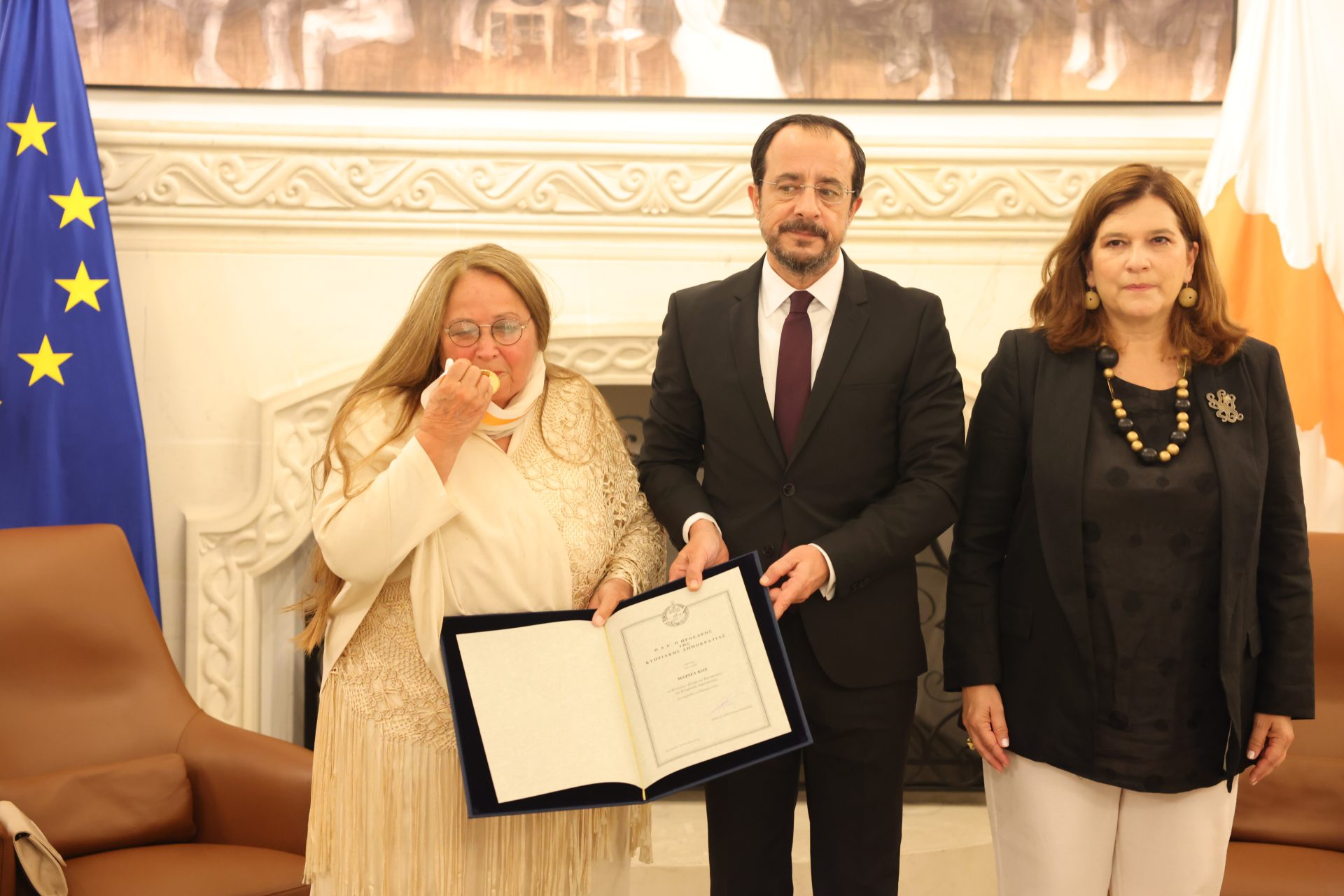 Ο Πρόεδρος της Δημοκρατίας κ. Νίκος Χριστοδουλίδης απάνειμε σήμερα το Μετάλλιο Εξαίρετης Προσφοράς της Κυπριακής Δημοκρατίας στην κα Μαρίζα Κωχ για τη διαχρονική συνεισφορά της στον πολιτισμό και τη συμβολή της στη διεθνοποίηση του κυπριακού προβλήματος.
