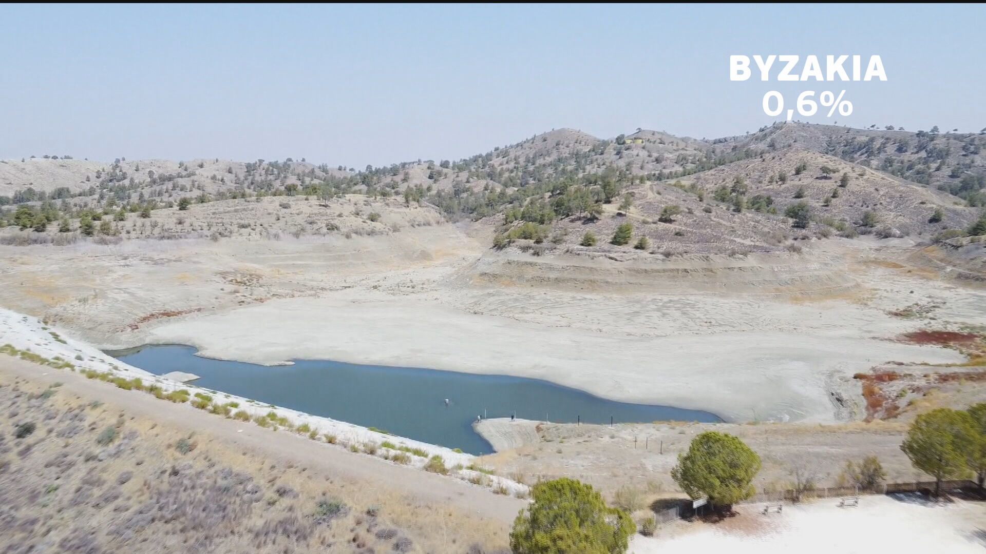 Το οδοιπορικό του Alpha στα φράγματα ξεκίνησε από την δυτική Λευκωσία. Στο φράγμα της Βυζακιάς, το νερό φτάνει όσο για να ποτίσουν 4-5 γεωργοί ακόμη μια φορά. Μετά, θα μείνει μόνο λάσπη.