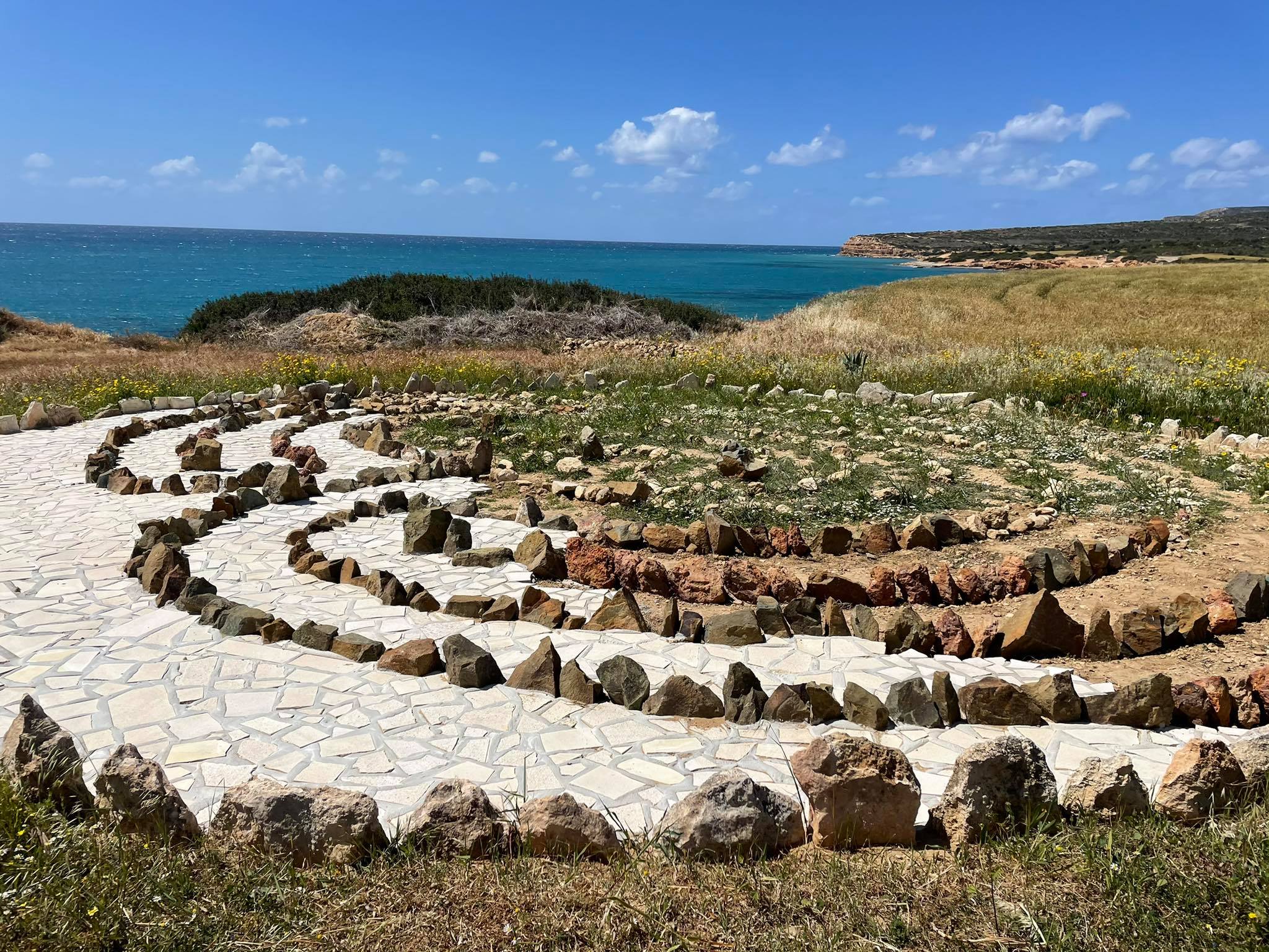 Πρόκειται για ένα έργο τέχνης ομάδας Ρώσων που διαμένουν μόνιμα στην Κύπρο. Επισκέπτες της περιοχής ζήτησαν το 2015 από τον ιδιοκτήτη της γης να τους παραχωρήσει τον χώρο ώστε να δημιουργήσουν με πέτρες από την περιοχή, τους συγκεκριμένους ψηφιδωτούς κύκλους οι όποιοι απεικονίζουν λαβύρινθους.
