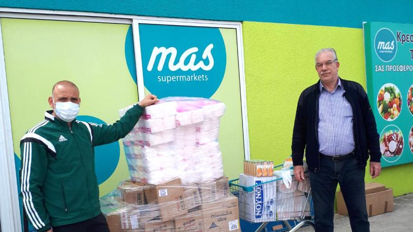 Η παράδοση των προϊόντων έγινε από τον Πρόεδρο των Υπεραγορών MAS, κύριο Αντρέα Βοσκού, ο οποίος με την παρουσία του έδειξε την συμπαράστασή του Ομίλου, διαβεβαιώνοντας πως οι Υπεραγορές MAS θα συνεχίσουν να συμβάλουν με τα δικά τους «όπλα» στηρίζοντας την κοινωνία για όσο χρειαστεί.