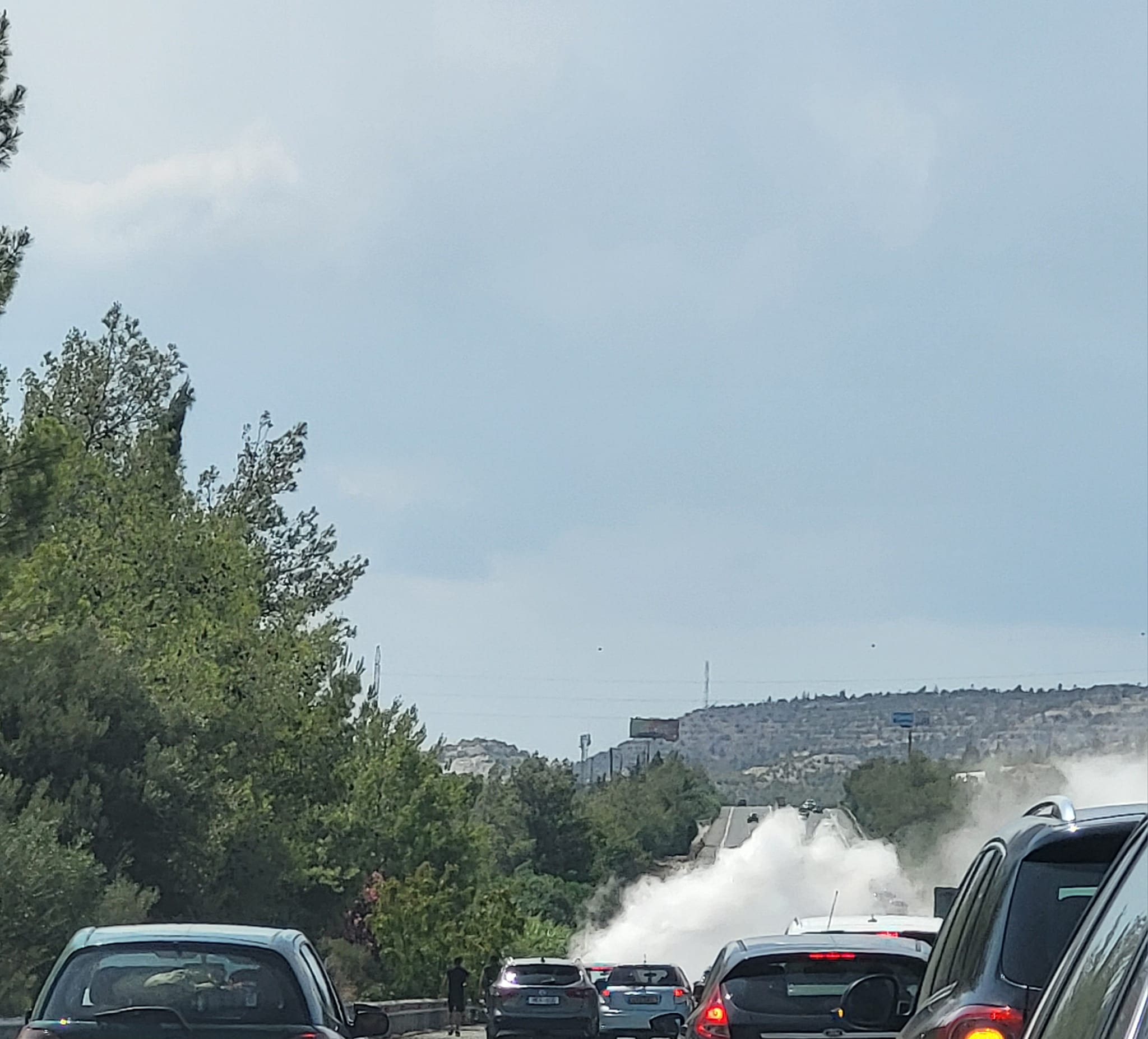 Χρήστες των μέσων κοινωνικής δικτύωσης ανέβασαν σχετική φωτογραφία στο γκρουπ του Fb “Cy Police Checkpoints”, όπου και διακρίνονται οι πυκνοί καπνοί να βγαίνουν από το όχημα.