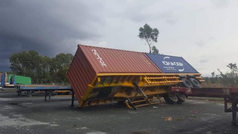 Εμπορευματοκιβώτια παρασύρθηκαν με αποτέλεσμα να προκληθούν ζημιές σε νταλίκες.