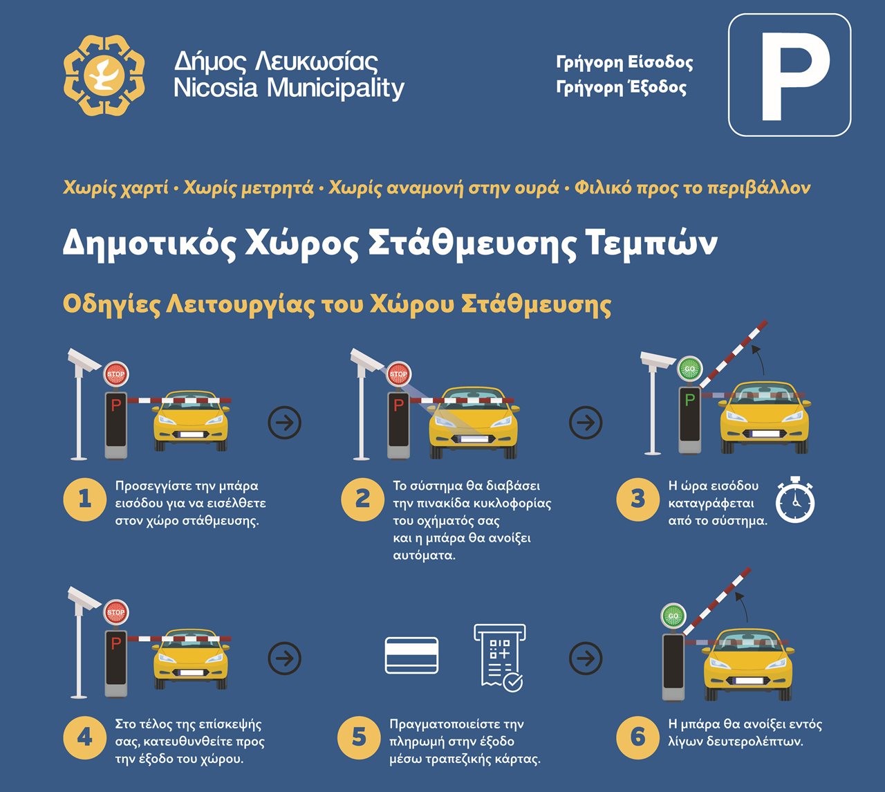 Ο Δήμος Λευκωσίας ενημερώνει το κοινό ότι από τη Δευτέρα 11 Αυγούστου 2025, ο Δημοτικός Χώρος Στάθμευσης Τεμπών, στην οδό Τεμπών στην εντός των τειχών Λευκωσία, θα λειτουργεί με νέο, σύγχρονο και φιλικό προς τον χρήστη σύστημα.