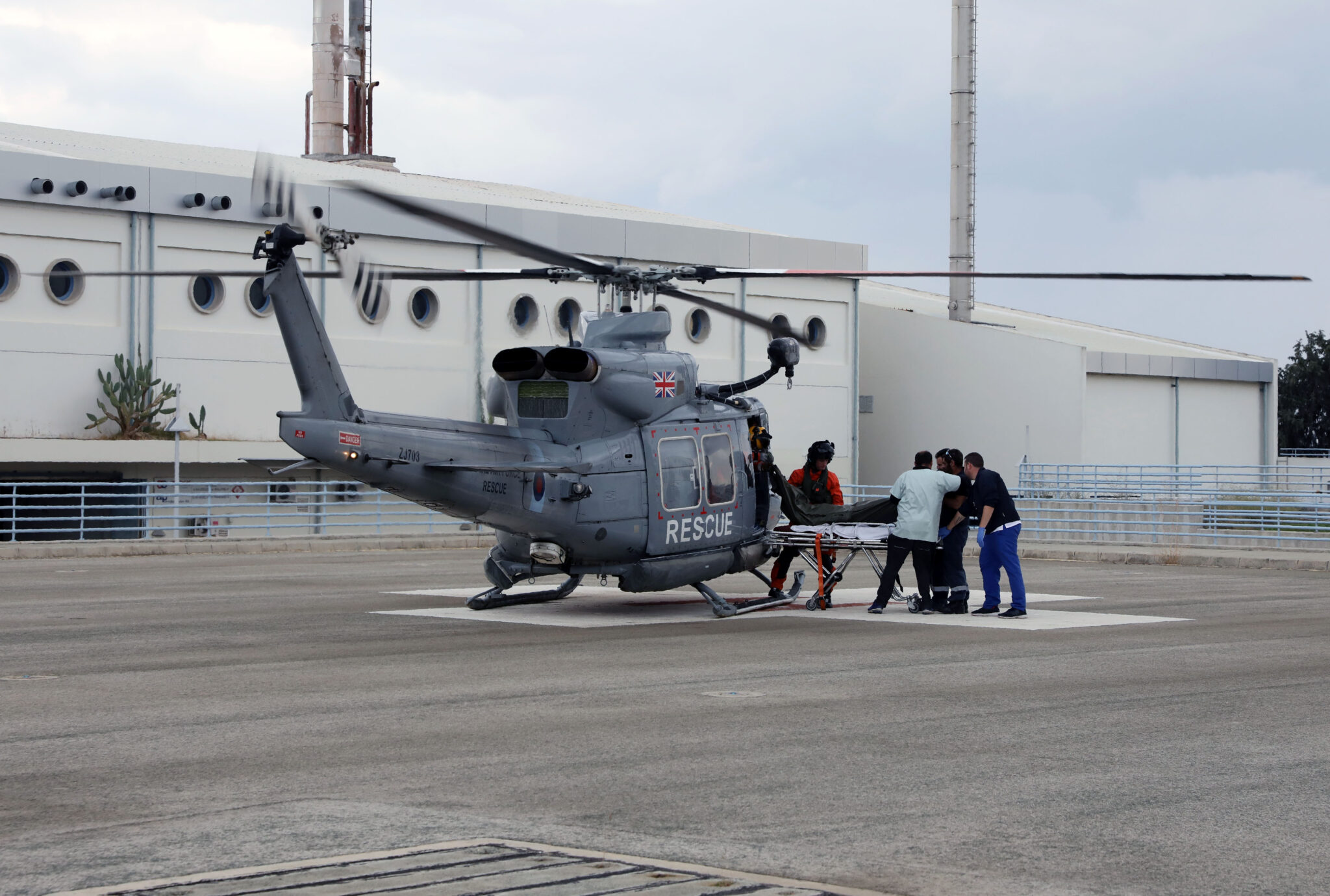 Αμέσως ενημερώθηκαν οι Αρχές των Βρετανικών Βάσεων που επιστράτευσαν ελικόπτερο για αεροδιακομιδή του 54χρονου στο Γενικό Νοσοκομείο Λευκωσίας, όπου νοσηλεύεται με τραύματα στο σπόνδυλο, τη λεκάνη και τον ώμο.