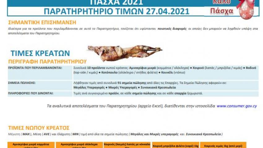 Σημειώνεται ότι το Παρατηρητήριο καλύπτει όλες τις επαρχίες και οι τιμές που παρουσιάζονται αφορούν στη συγκεκριμένη ημερομηνία που έχει διεξαχθεί η έρευνα, δηλαδή στις 27 Απριλίου του 2021.
