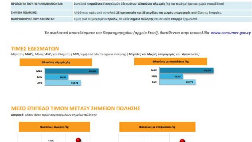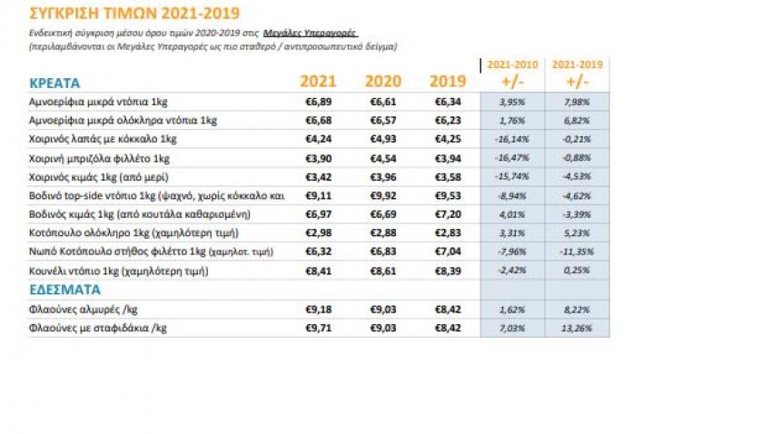 Η Υπηρεσία Προστασίας Καταναλωτών επισυνάπτει επίσης πίνακα με τις τιμές που ίσχυαν την αντίστοιχη περίοδο πέρυσι.