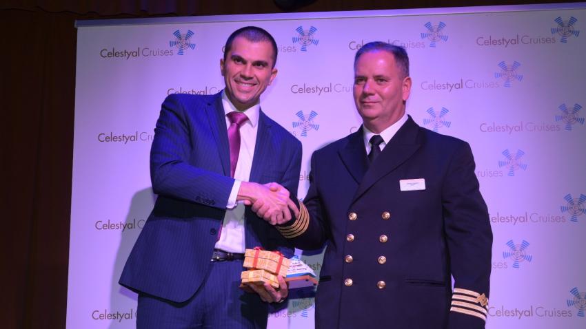Τους καλεσμένους υποδέχτηκαν ο Διευθύνων Σύμβουλος της Celestyal Cruises, κ. Κρις Θεοφιλίδης και ο Εκτελεστικός Πρόεδρος του Ομίλου Louis κ. Κωστάκης Λοΐζου, ενώ για τους επιβάτες οργανώθηκε εορταστικό καλωσόρισμα από το Υφυπουργείο Τουρισμού με παραδοσιακούς χορούς, μουσική και πλούσια παραδοσιακά εδέσματα.