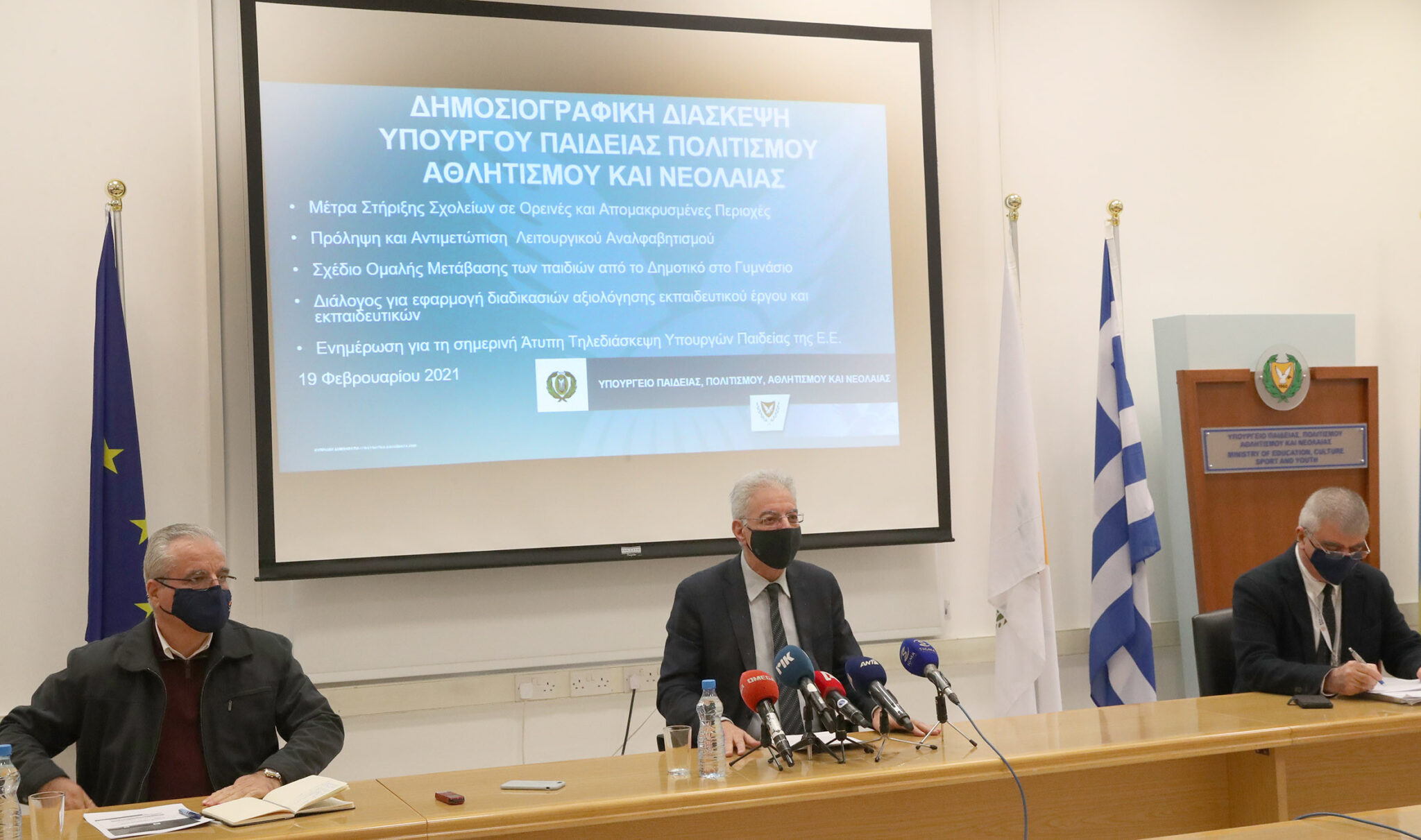 Ο Υπουργός Παιδείας, Πολιτισμού, Αθλητισμού και Νεολαίας κ. Προδρόμος Προδρόμου παραχώρησε σήμερα, στο Υπουργείο, συνέντευξη Τύπου για τα μέτρα στήριξης Σχολείων Ορεινών και Απομακρυσμένων Περιοχών,  για την Πρόληψη και Αντιμετώπιση του Λειτουργικού Αναλφαβητισμού και για την ομαλή μετάβαση των μαθητών και μαθητριών από το Δημοτικό στο Γυμνάσιο.