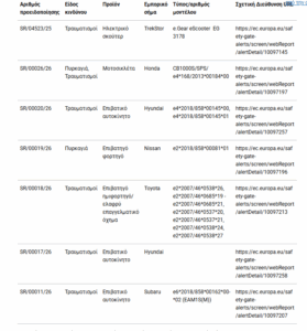 Περισσότερες λεπτομέρειες για τα επικίνδυνα προϊόντα μπορούν να ανακτηθούν μέσω του Safety Gate, χρησιμοποιώντας τον αριθμό προειδοποίησης κάθε προϊόντος.