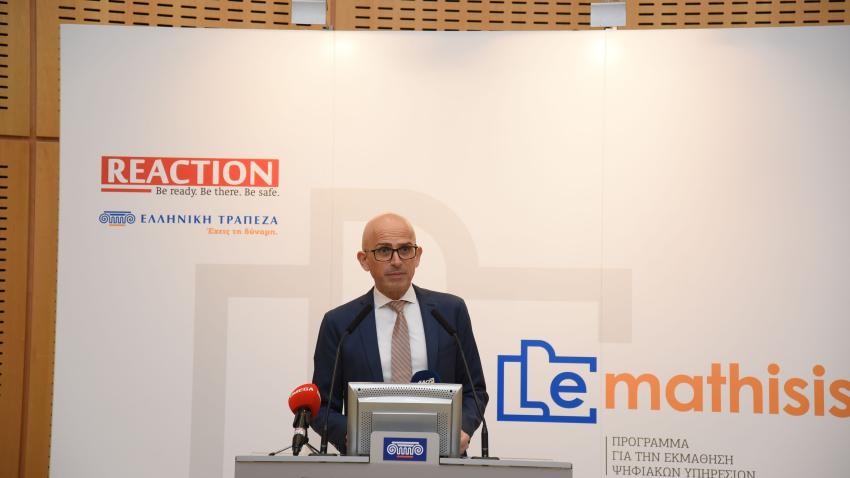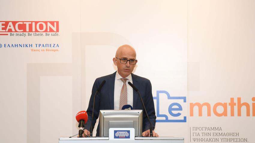 Το πρόγραμμα εκπαίδευσης Emathisis, το οποίο αφορά δωρεάν εκπαίδευση ηλεκτρονικών υπηρεσιών για 150 κοινότητες παρουσίασαν σήμερα ο Οργανισμός Reaction και η Ελληνική Τράπεζα σε διάσκεψη τύπου στα Κεντρικά Γραφεία της Ελληνικής Τράπεζας.