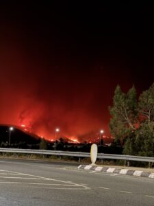 Η νύχτα για τις δυνάμεις πυρόσβεσης είναι εξαιρετικά δύσκολη, με τη φωτιά να συνεχίζει ανεξέλεγκτη την καταστροφική της πορεία. Στο σημείο επιχειρούν κατά τη διάρκεια της νύχτας 300 πυροσβέστες, 75 οχήματα, καθώς επίσης εθελοντές με υδροφόρες. Τα 14 πτητικά μέσα αποσύρθηκαν με τη δύση του ηλίου, και με το πρώτο φως της ημέρας θα ριχθούν και πάλι στην μάχη με τις φλόγες.
