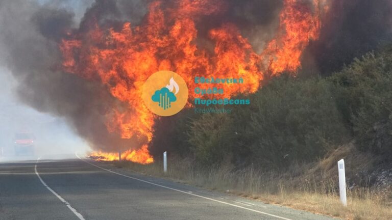 Φωτογραφίες από το σημείο ανέβασε στη σελίδα του ο KitasWeather, στιος οποίες και φαίνεται η φωτιά να έχει ξεσπάσει σε άγρια βλάστηση ακριβώς δίπλα στον δρόμο.