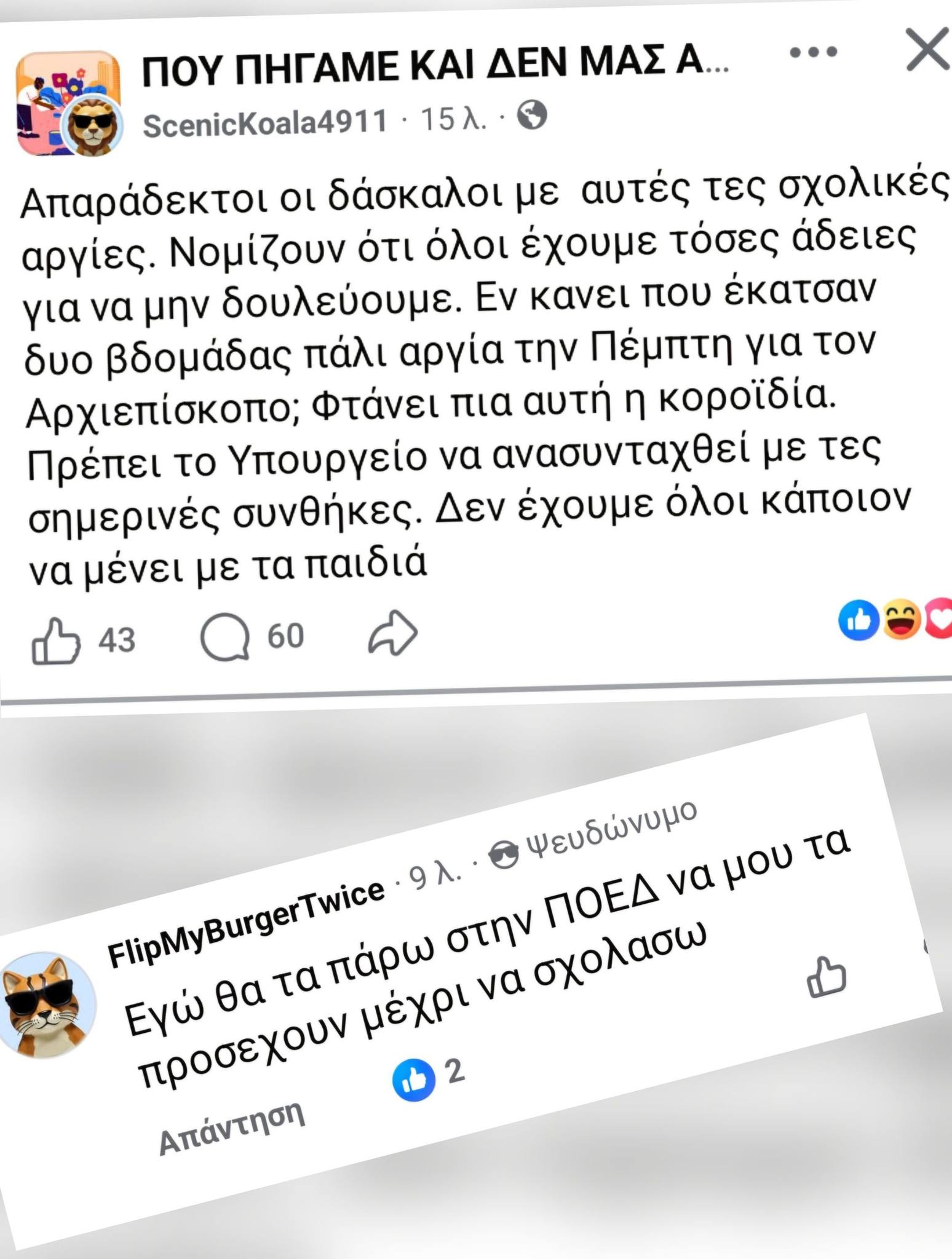 Ενδεικτικές, οι αναρτήσεις επηρεαζόμενων γονέων σε προφίλ και σελίδες στα μέσα κοινωνικής δικτύωσης: