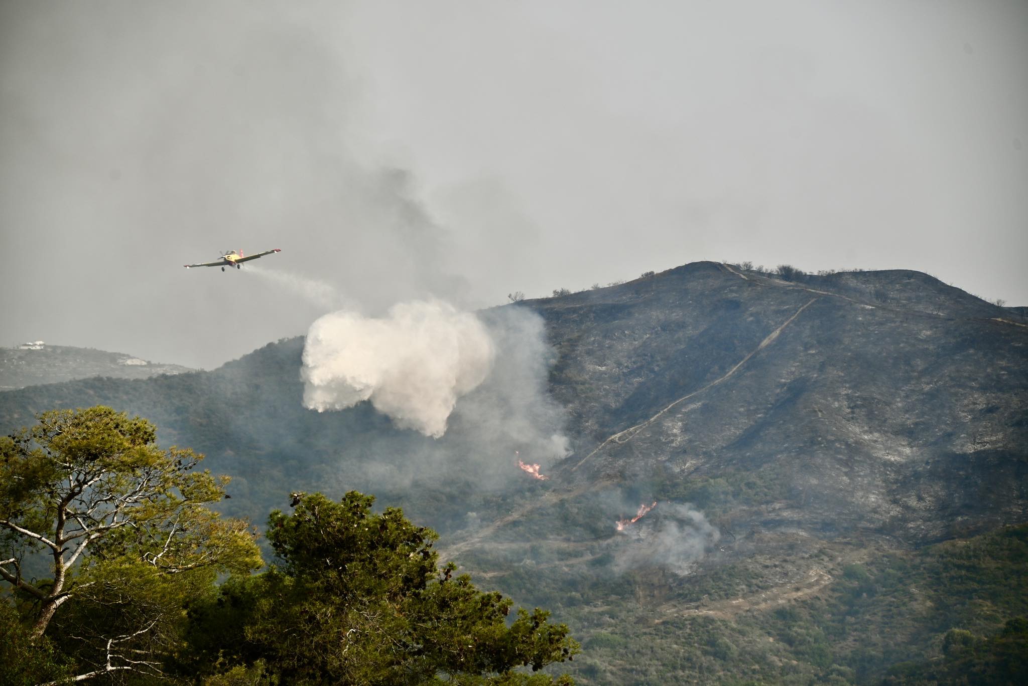 Σε σχέση με το πύρινο μέτωπο, η κατάσταση εξακολουθεί να είναι δύσκολη με τρία πτητικά μέσα και ισχυρές επίγειες δυνάμεις να επιχειρούν στο σημείο από το Τμήμα Δασών, την Πυροσβεστική και την Πολιτική Άμυνα. Συγκεκριμένα, ρίψεις νερού πραγματοποιεί αεροσκάφος του Τμ. Δασών, ελικόπτερο της Αστυνομίας και ένα ελικόπτερο των Βρετανικών Βάσεων.