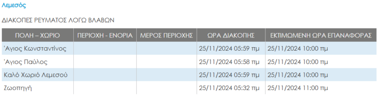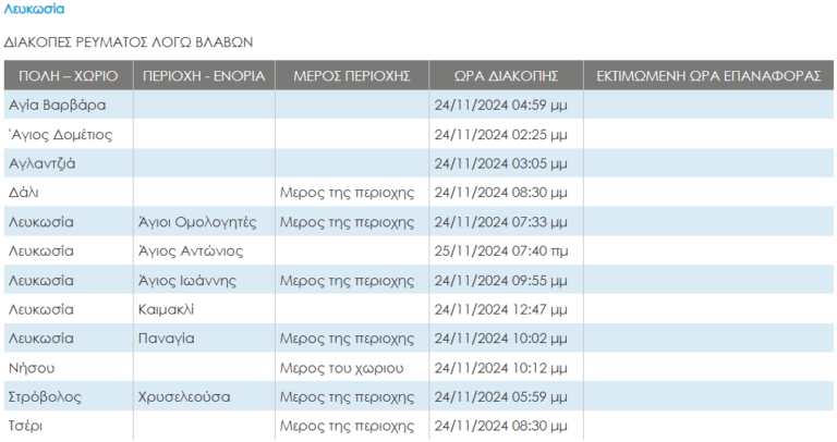Όπως αναφέρει η κ. Παπαδοπούλου, έγινε ανάκληση προσωπικού και από άλλες επαρχίες ώστε να μπορέσουν τα συνεργεία να ανταποκριθούν στις ανάγκες που προέκυψαν λόγω των ισχυρών ανέμων και των ζημιών που προκλήθηκαν. Εξήγησε επίσης ότι ήταν μεγάλος ο αριθμός των κλήσεων, διαβεβαιώνοντας ότι η ΑΗΚ συνεχίζει τις εργασίες για άμεση αποκατάσταση των βλαβών.