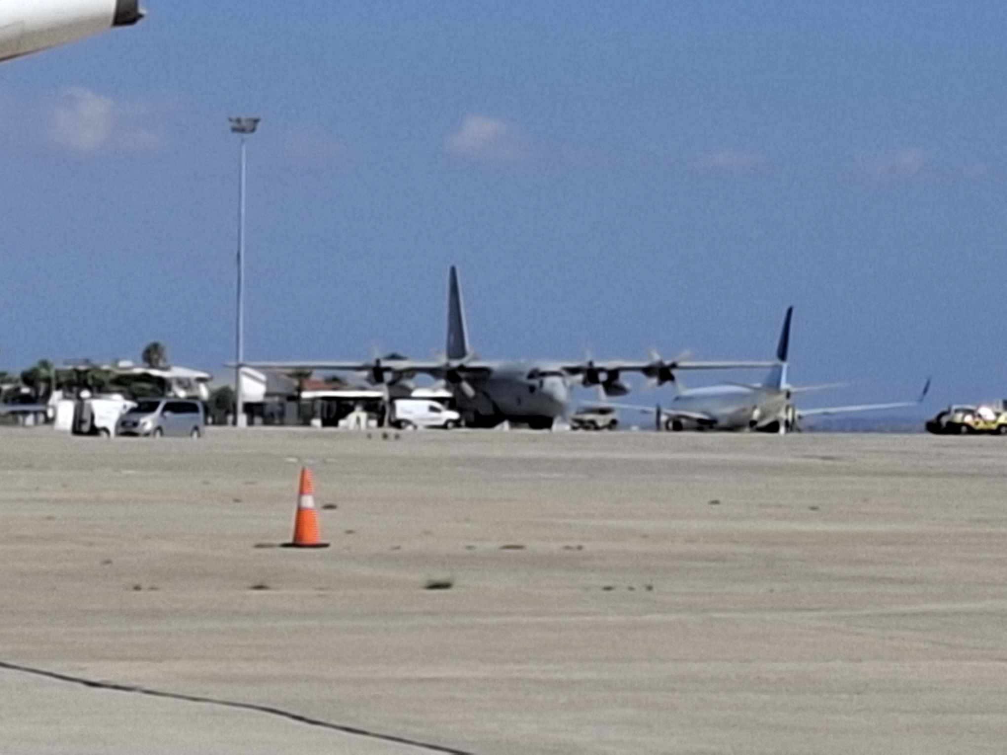 Το μεταγωγικό αεροπλάνο προσγειώθηκε λίγο πριν τη μία το μεσημέρι στο παλιό αεροδρόμιο Λάρνακας. Οι επιβαίνοντες του αεροσκάφους αναμένεται να μεταφερθούν με λεωφορείο στους χώρους του νέου αεροδρομίου.