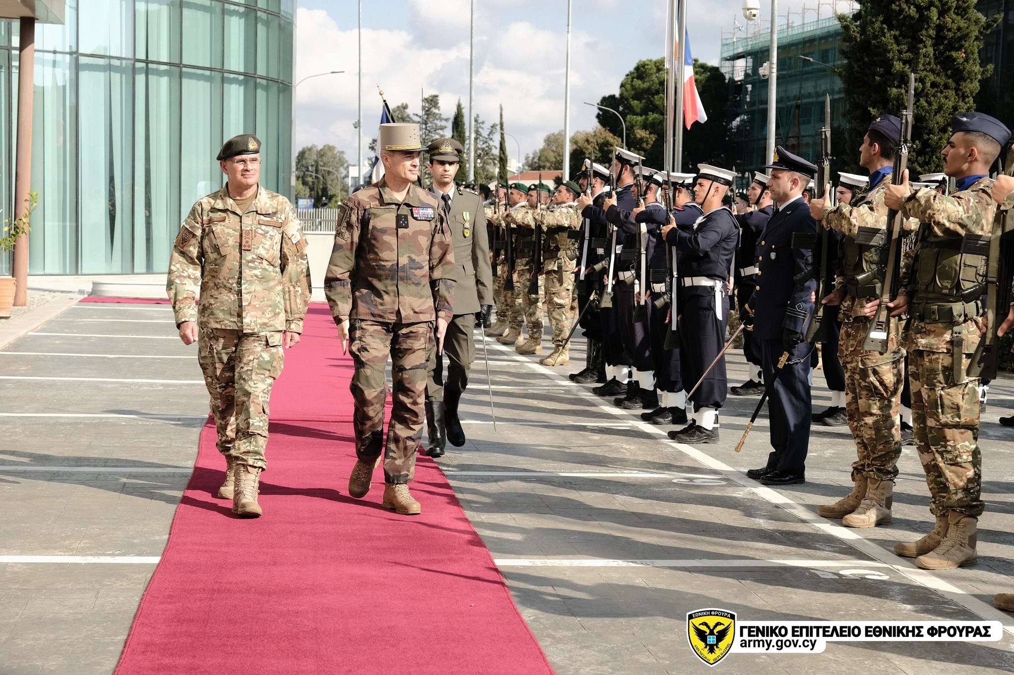 Η επίσκεψη του Γάλλου Αρχηγού, ολοκληρώθηκε με συνάντηση με τον Υπουργό Άμυνας, Χαράλαμπο Πετρίδη, στην παρουσία της Γαλλίδας Πρέσβειρας Salina Grenet-Catalano και του Αρχηγού της Εθνικής Φρουράς.