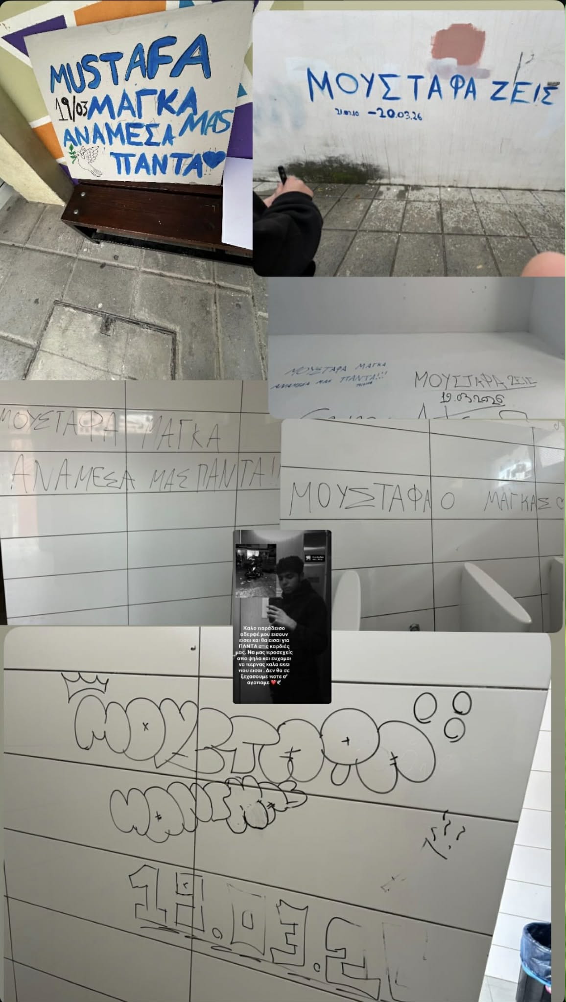 Φίλοι και συμμαθητές του άτυχου νεαρού τον αποχαιρετούν με επιγραφές στο σχολείο όπου φοιτούσε, γράφοντας «Mustafa ζεις».