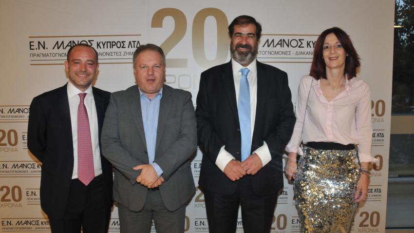 Με μια όμορφη εκδήλωση, η οποία πραγματοποιήθηκε στην κεντρική σκηνή του ΘΟΚ στη Λευκωσία, η εταιρεία πραγματογνωμόνων E.N. MANOS Ltd γιόρτασε 20 χρόνια δυναμικής παρουσίας στην κυπριακή αγορά. Την Πέμπτη 6 Ιουνίου, εκπρόσωποι της ασφαλιστικής βιομηχανίας της Κύπρου, στελέχη του τραπεζικού κλάδου, εκπρόσωποι ελεγκτικών εταιρειών, στενοί συνεργάτες, το έμψυχο δυναμικό και φίλοι της εταιρείας είχαν την ευκαιρία να απολαύσουν την παράσταση «Ιστορίες και Τραγούδια» της Μαργαρίτας Ζορμπαλά.