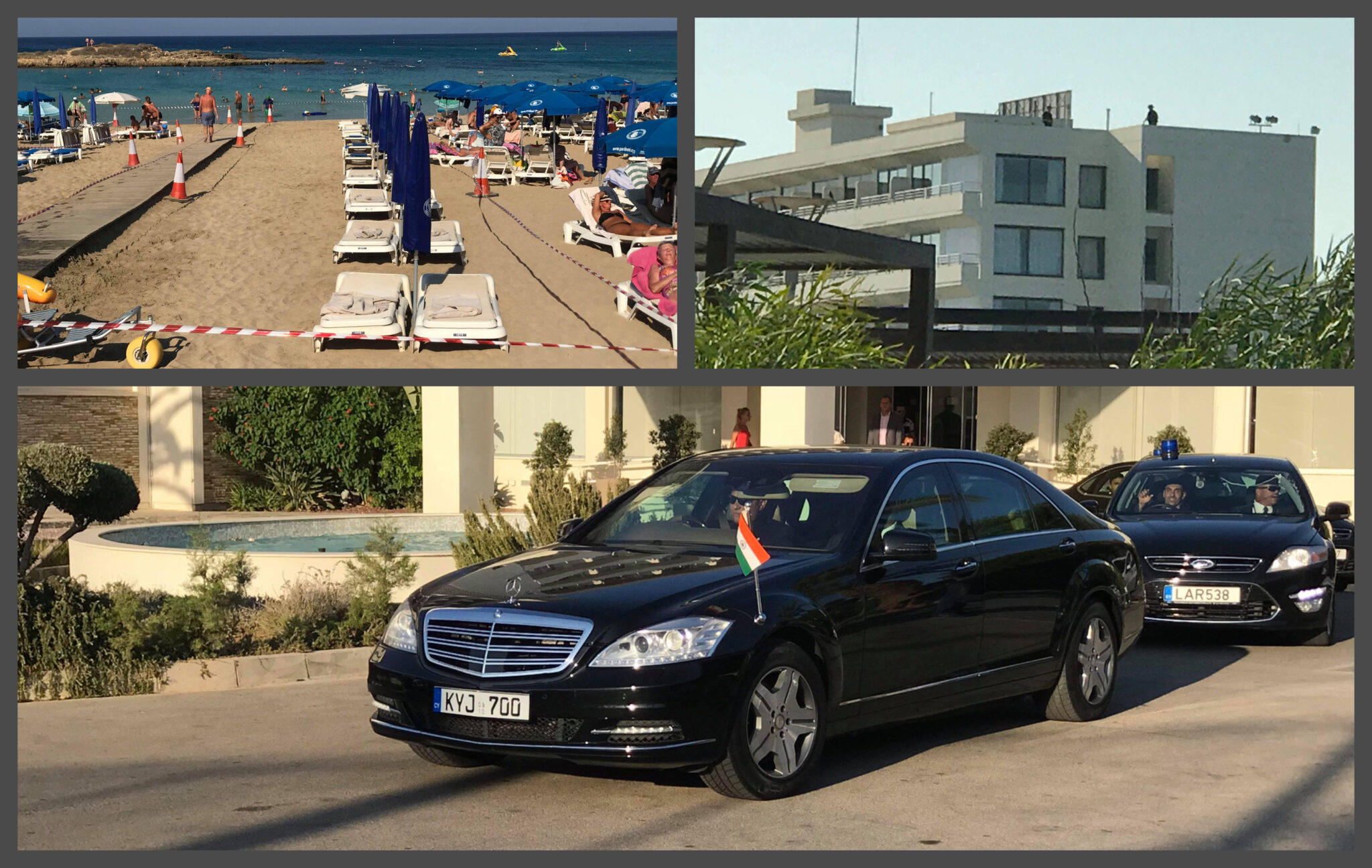 Η λιμουζίνα στάθμευσε κοντά στην παραλία Fig Tree Bay όπου απόλαυσε τα καταγάλανα νερά και τη χρυσή αμμουδιά του Πρωταρά. Σύμφωνα με πληροφορίες, ο Ινδός Πρόεδρος και η κόρη του έκαναν βόλτα στην παραλία, ενώ Υπουργός που τον συνόδευε βούτηξε στη θάλασσα.