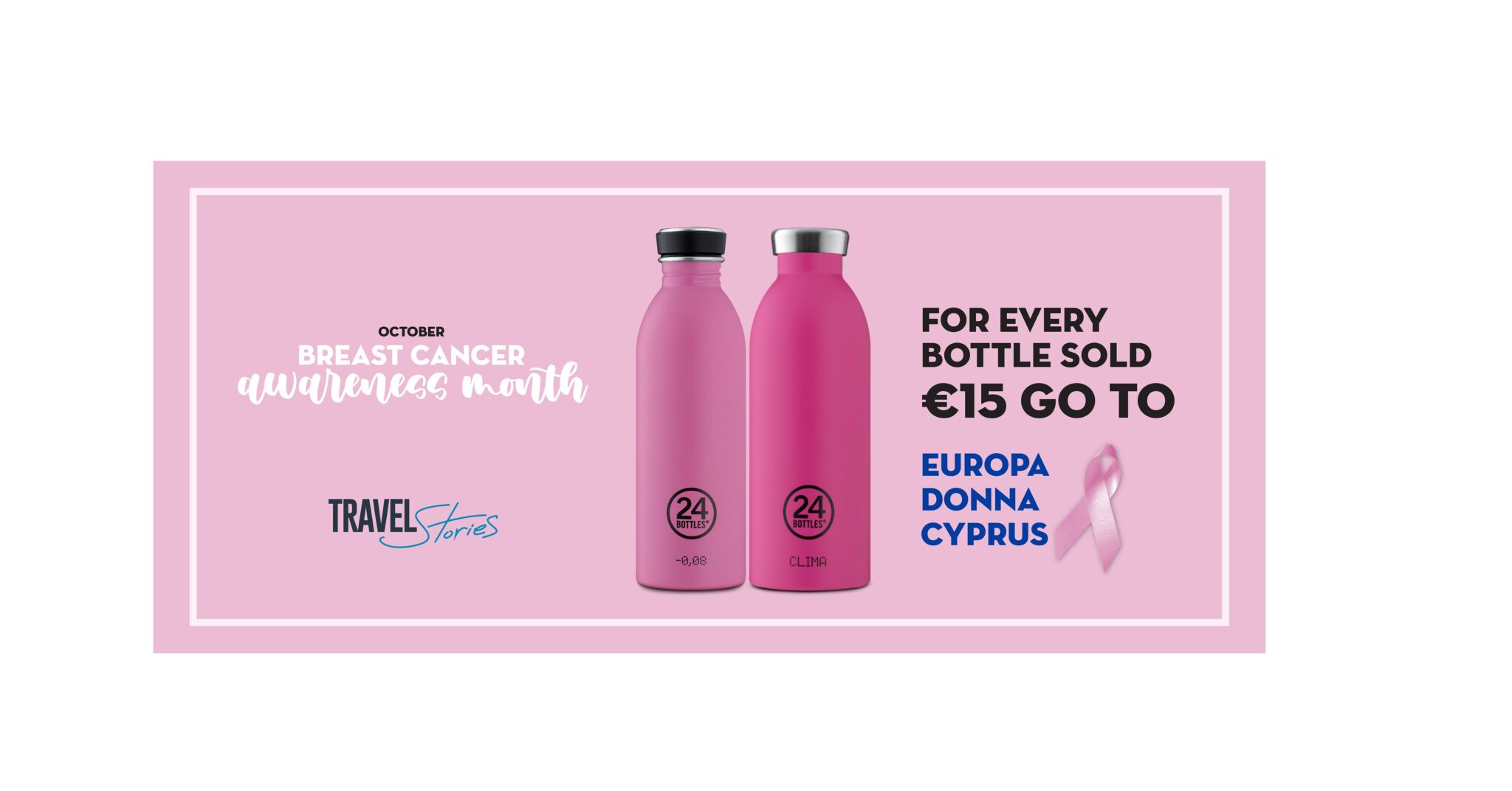Συγκεκριμένα, αγοράζοντας τα μπουκάλια 24bottles – τα κομψά, ιταλικά μπουκάλια που διατηρούν το ρόφημα παγωμένο ή ζεστό, 24 και 12 ώρες αντίστοιχα – εισφέρετε 15€ για την ενίσχυση των δράσεων της EUROPA DONNA Κύπρου. Τα 24bottles θα τα βρείτε στα καταστήματα Travel Stories σε My Mall, Nicosia Mall, Mall of Cyprus και Metropolis Mall.